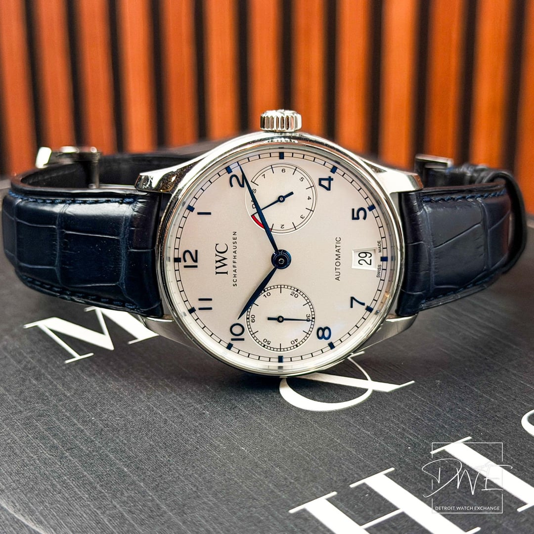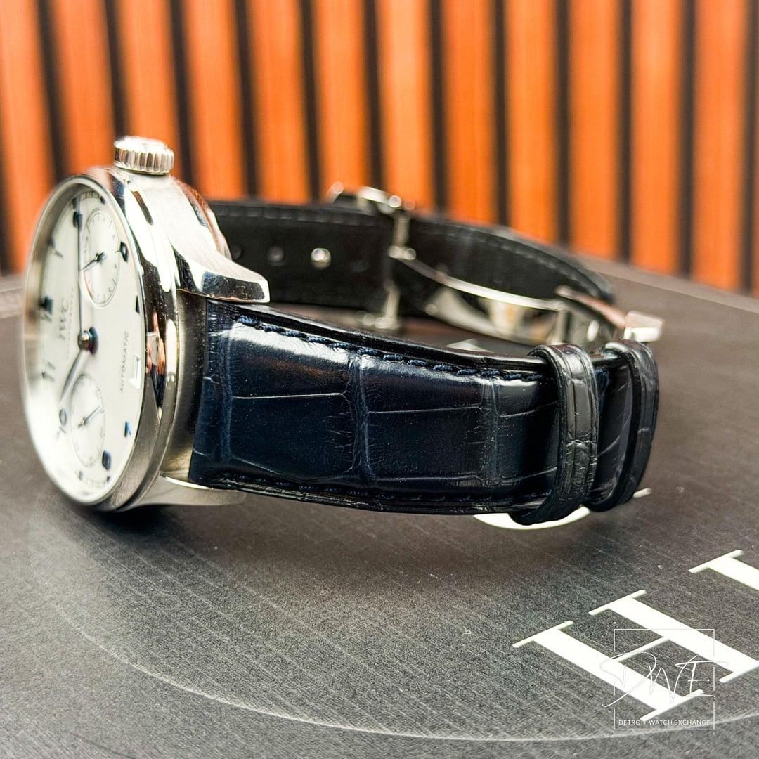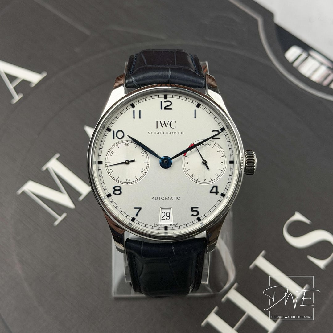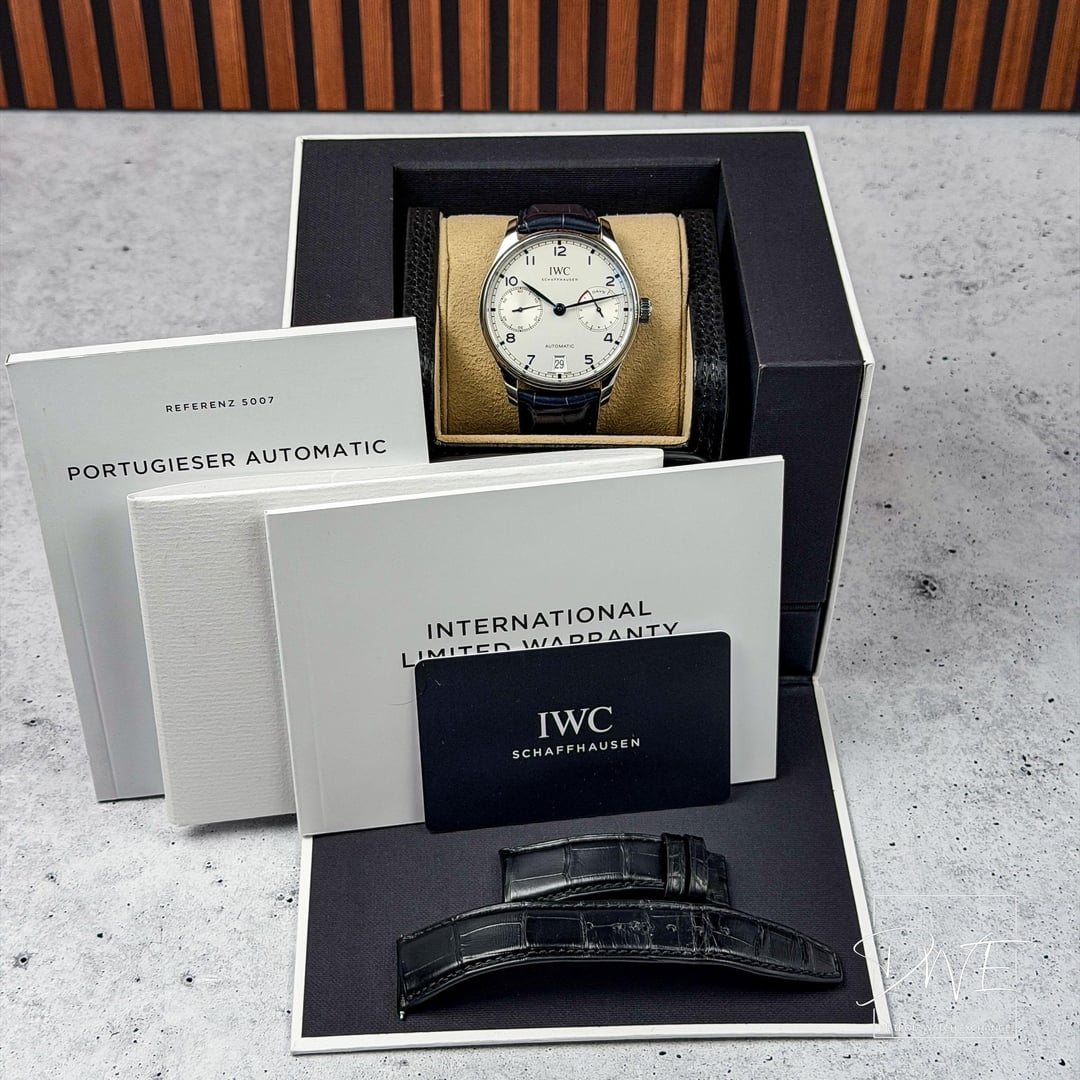 🕒 **IWC Portuguese Ref IW500705** **📷 Time Stamp:** [**https://imgur.com/a/6YAT6ia**](https://imgur.com/a/6YAT6ia) 💬 **Description:** Classic IWC Portuguese Automatic with a clean black dial and iconic large-case presence. This **full-set** example includes **two original IWC leather straps** in black and navy, offering versatile wear options. Elegant, balanced design powered by IWC’s in-house automatic movement. 🧾 **Condition:** • Set 📦 full set • Case 🧼 excellent condition • Crystal 💎 clean • Dial 🎨 Silver, excellent • Strap 🎽 IWC black leather strap • Strap 🎽 IWC navy leather strap • Movement ⚙️ automatic, running properly 📌 **Details:** Ref 🔢 IW500705 | Size 📏 42.3mm | Movement ⚙️ Automatic 💵 **$6999 + ✈️ Shipping**