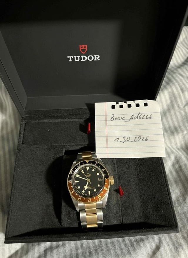 For sale is my Tudor Black Bay GMT Steel & Gold “Root Beer” (Ref. 79833MN) in unworn / mint condition. This is a beautiful two-tone GMT that blends vintage charm with modern Tudor reliability. Condition: Like new / unworn Purchase Date: January 17, 2026 Case Size: 41mm Movement: Tudor Manufacture Calibre MT5652 (COSC certified) Materials: Stainless steel case with 18k yellow gold bezel and crown Bezel: Black & brown GMT bezel Scope of delivery (Full Set): Inner & outer Tudor boxes User manual & warranty booklet Official warranty card (dated Jan 2026) All original bracelet links Price: $2,700 Payment via PayPal (preferred). Happy to answer questions or provide additional photos for serious buyers