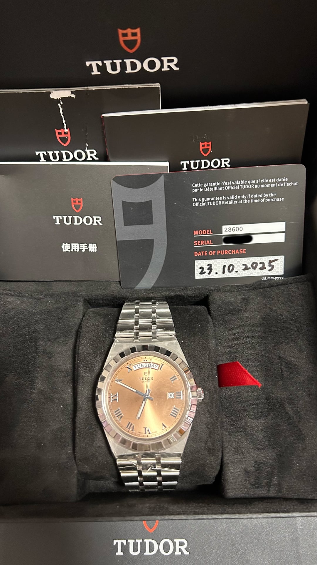 Up for sale is a 2025.10 BNIB Tudor Royal Salmon Dial 28600 41mm. It comes with a warranty card dated 2025.10, Tudor inner and outer boxes, and Tudor booklets. It is under warranty (10/2025 - 10/2030). ***The authenticity is 100% guaranteed – the watch has been thoroughly inspected and authenticated prior to listing. Feel free to check out my website*** **Tonneau Atelier** ***in my profile.*** Price: $2299. Payment via PayPal or Wise is preferred. No trades please! Watch is in Chongqing (known as the Cyberpunk City), China. I will pay the customs duties or tariffs for buyers located in United States. Watches will be shipped via FedEx, which delivers to your doorstep in just four days. Worldwide shipping and I am willing to ship this watch anywhere with buyers paying for the shipping. If you really love this watch and pay fast, I will offer free shipping! Feel free to ask for any custom timestamps or videos, I am happy to send them. Please don't hesitate to ask me any questions, thank you! I am able to source all kinds of Tudors, please feel free to PM me! Timestamp: [https://imgur.com/a/L3sOKSi](https://imgur.com/a/L3sOKSi)