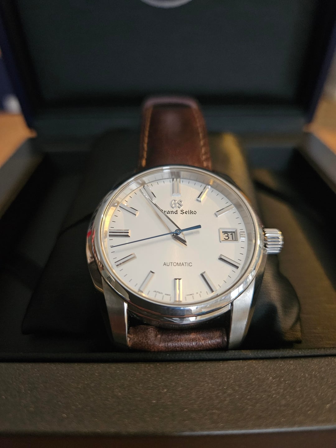 Selling this silver dial Grand Seiko. I do not have the bracelet, but it is on a custom made leather strap with the genuine Grand Seiko clasp. Watch is in very good condition. Looking for $2,750. Buyer pays shipping and tariffs if any apply. I'm in the USA.