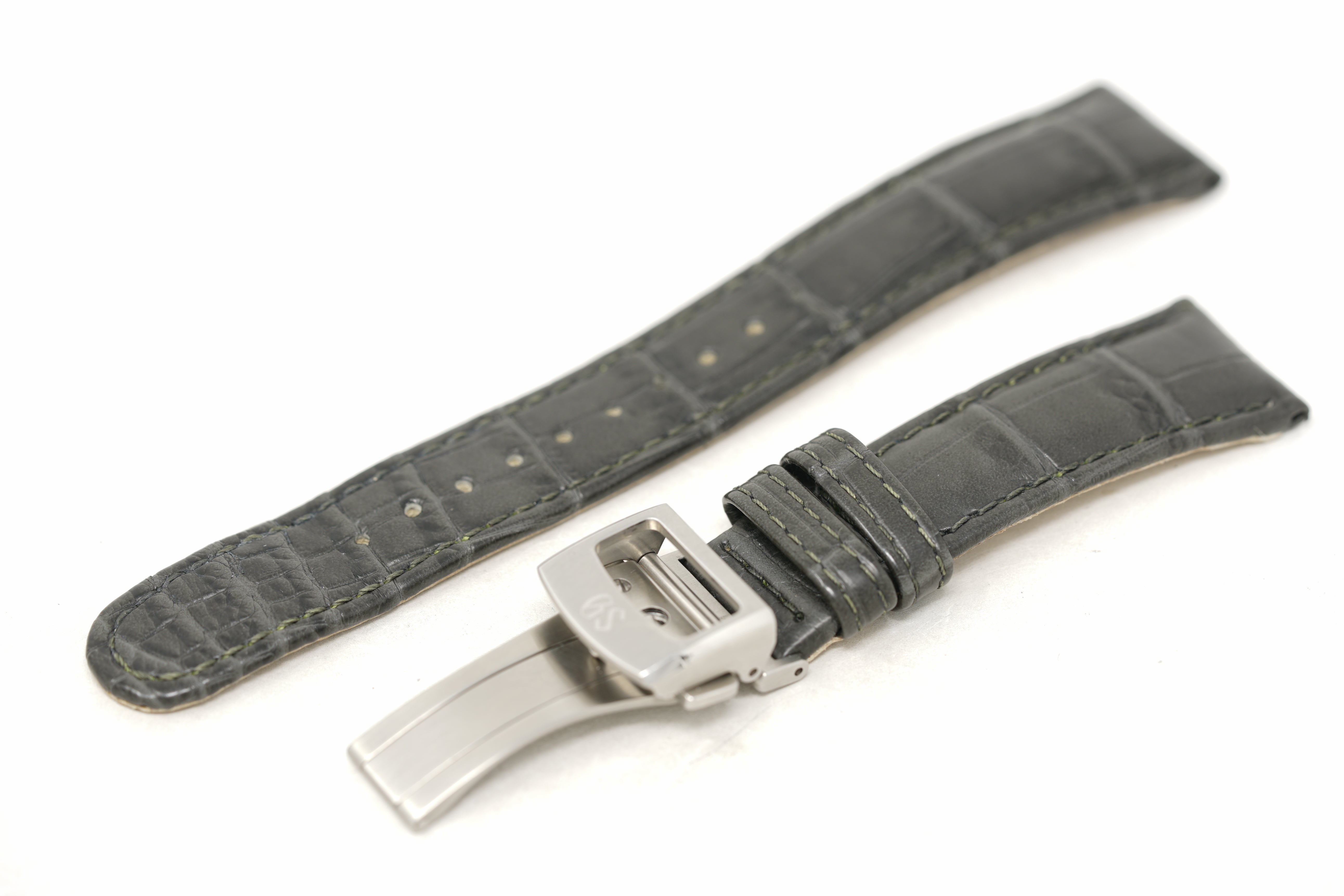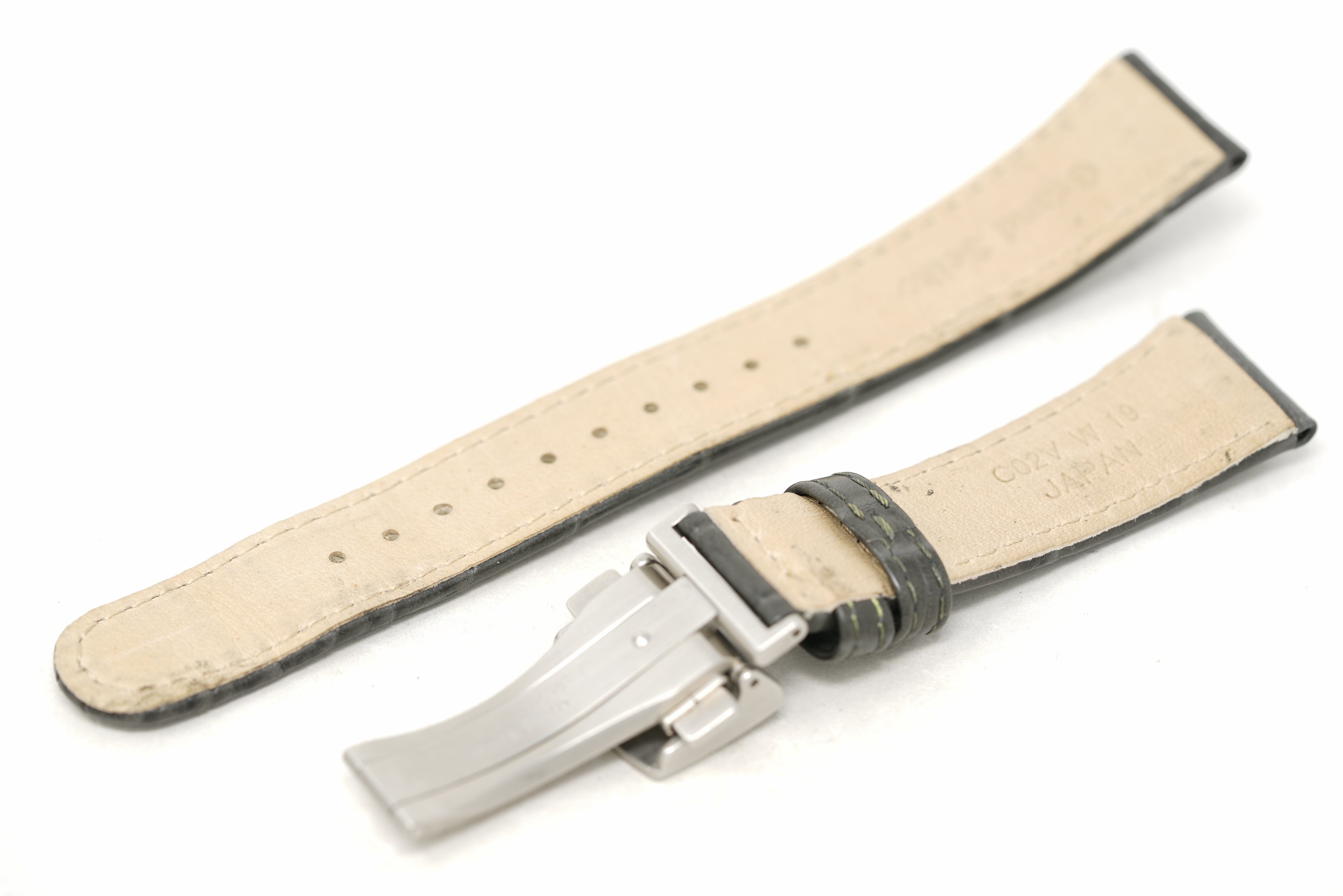 Strap/Bracelet: Two Stainless Steel Bracelets, Grey Leather Strap & Green Leather Strap with Stainless Steel Tang Buckle
