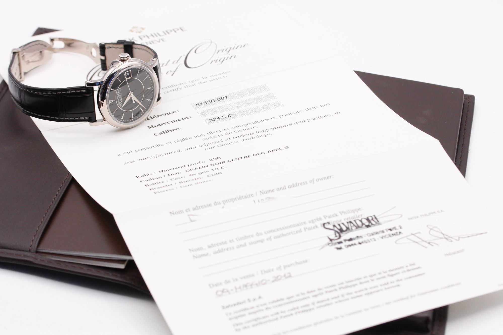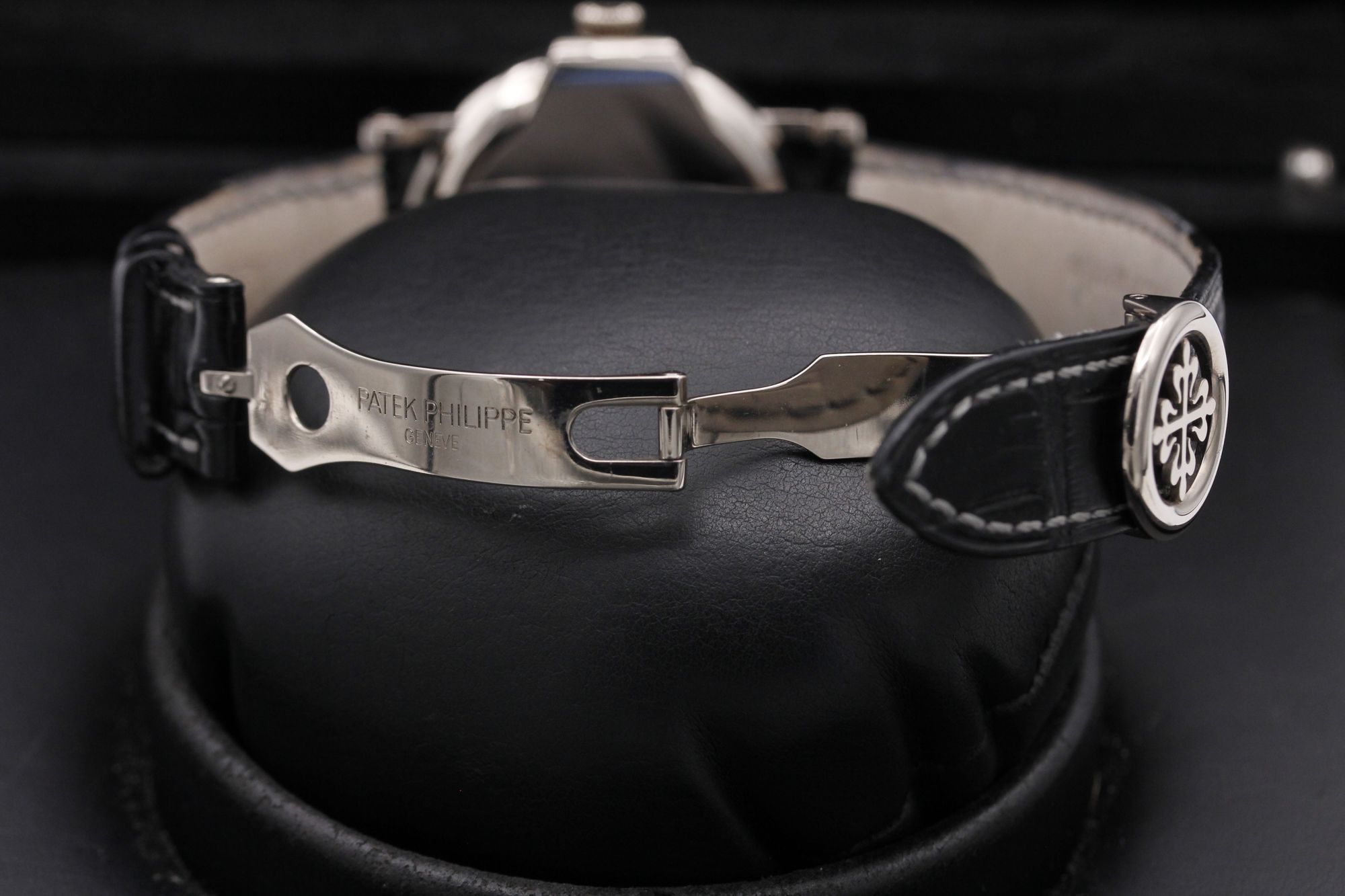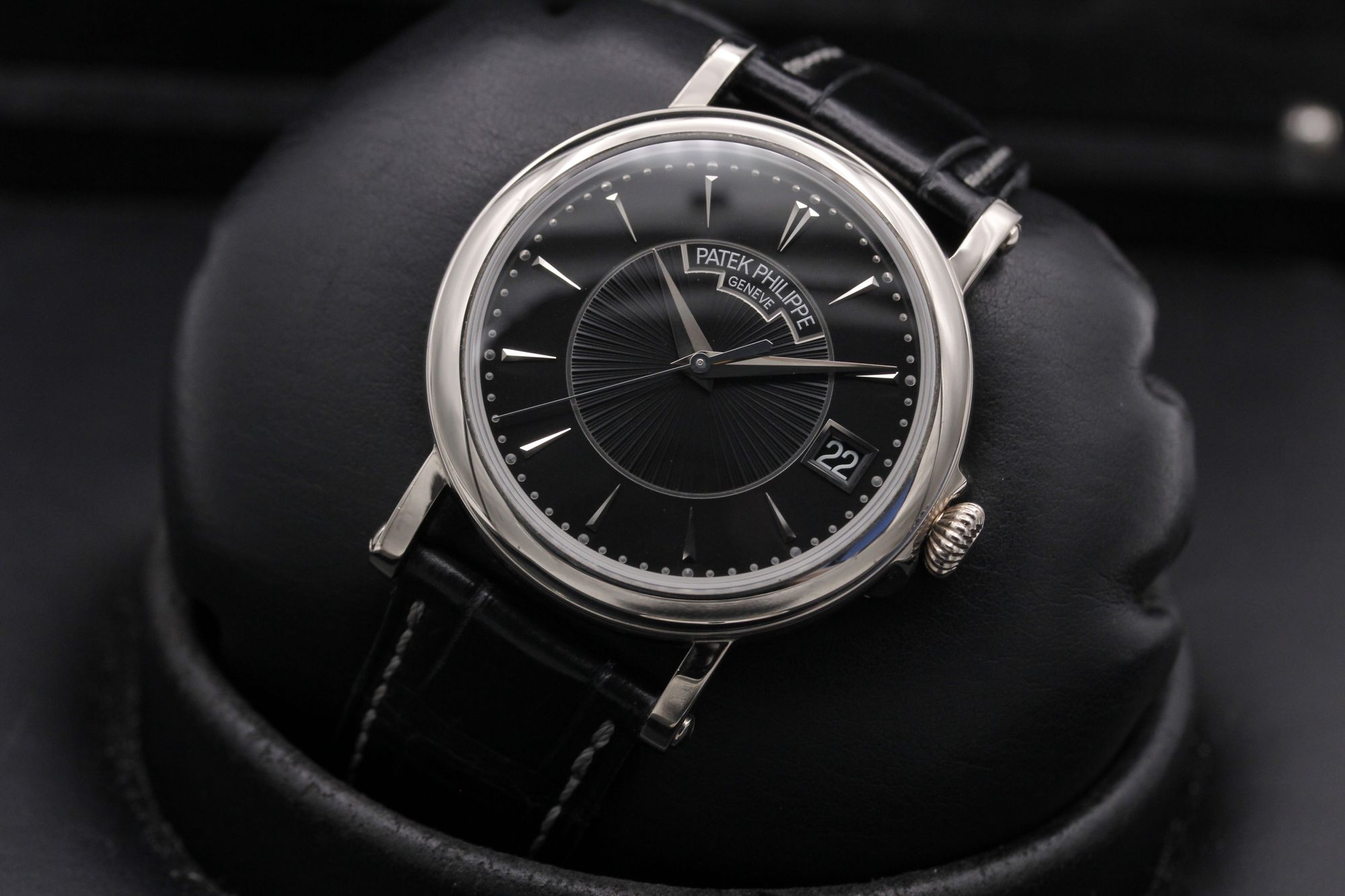 Brand: Patek Philippe Model: Calatrava Case Size: 38mm Condition: Pre-Owned Grade: Excellent - Never Polished Bracelet Type: Black Leather Strap w. White Gold Patel Philippe Deployant Buckle Material: White Gold Dial: Black Sunburst Guilloche Age: Modern Movement: Automatic - Date Papers: Yes Box: Yes Reference: 5153G-001 Additional Notes: Certificate Dated - May 2012