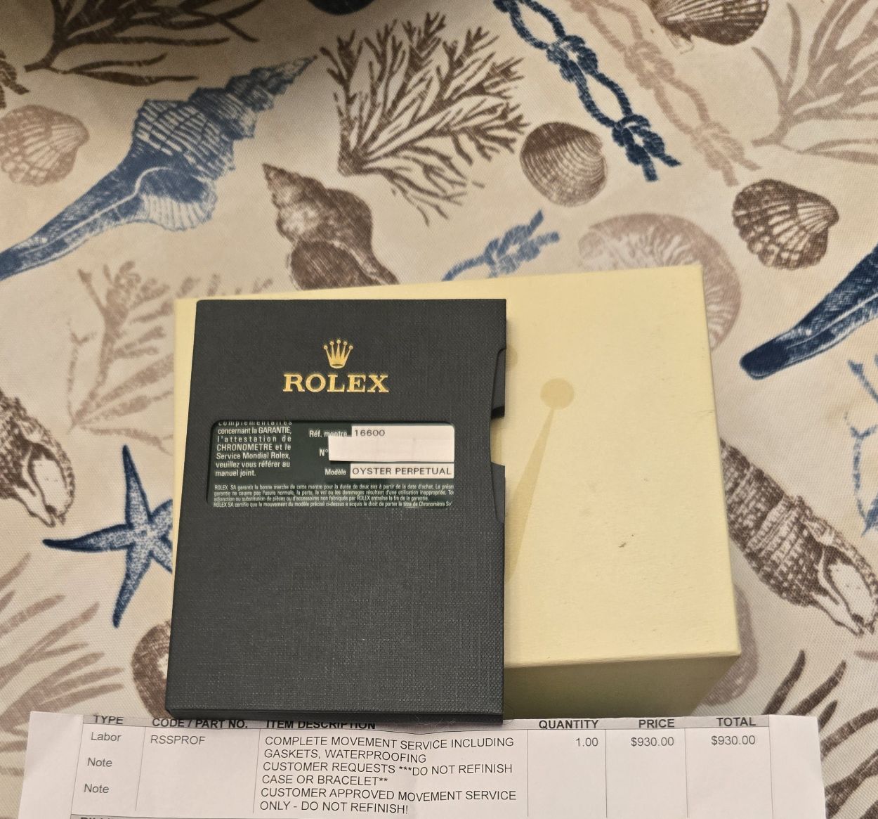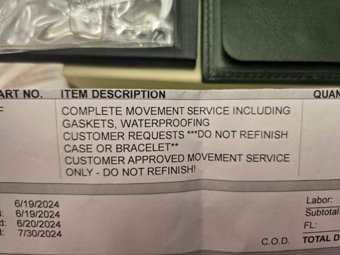 Timepiece was serviced on 12/2024 by Southeastern Service Center (Rolex Service Center) and is under warranty until 12/2026. Movement was only serviced, no polishing to case or bracelet as watch is in excellent condition.