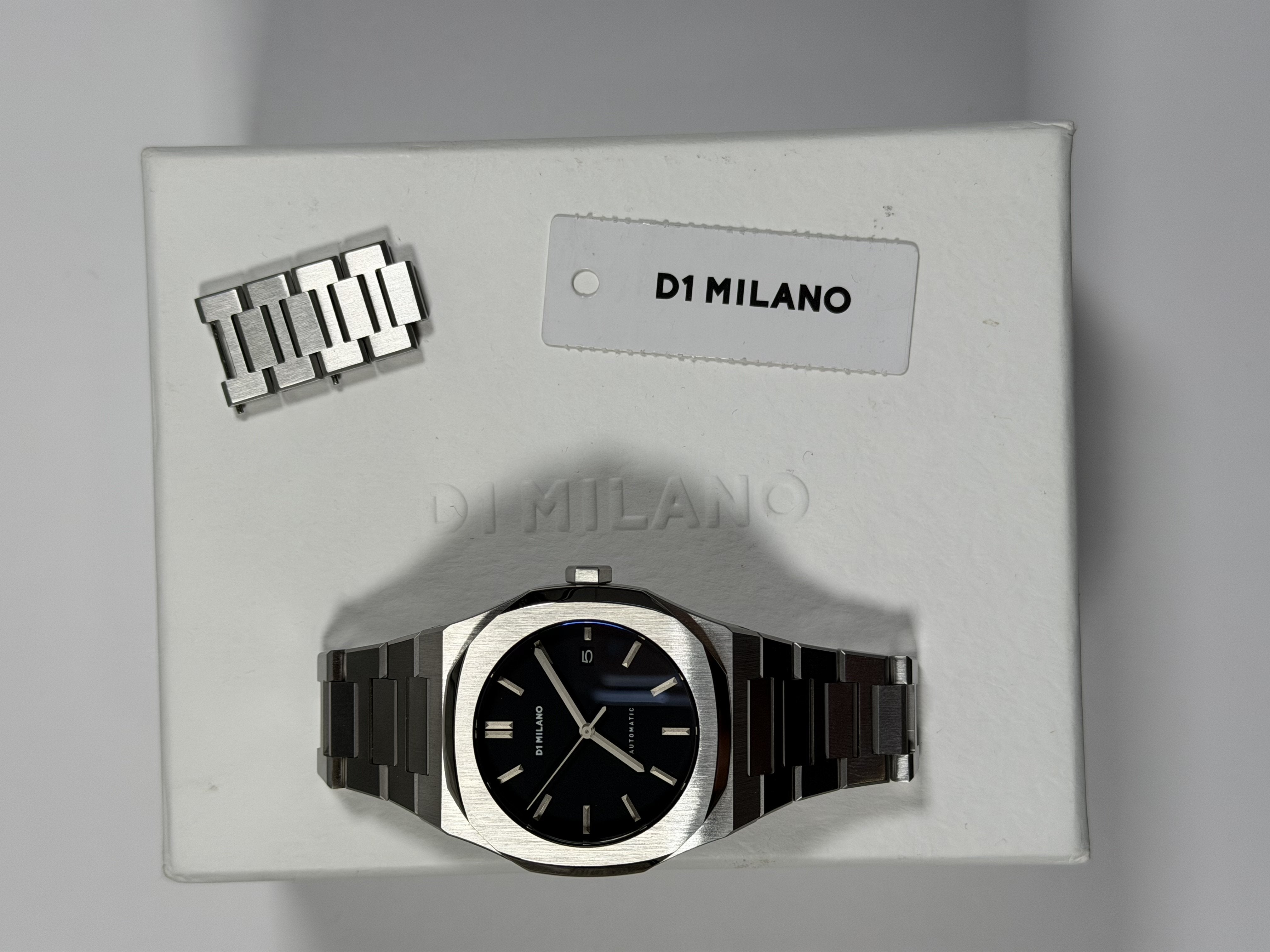 For sale is a like new condition D1 milano. Has amiyota automatic and sapphire. Currently sized for 7.25” wrist and comes with all spare links.