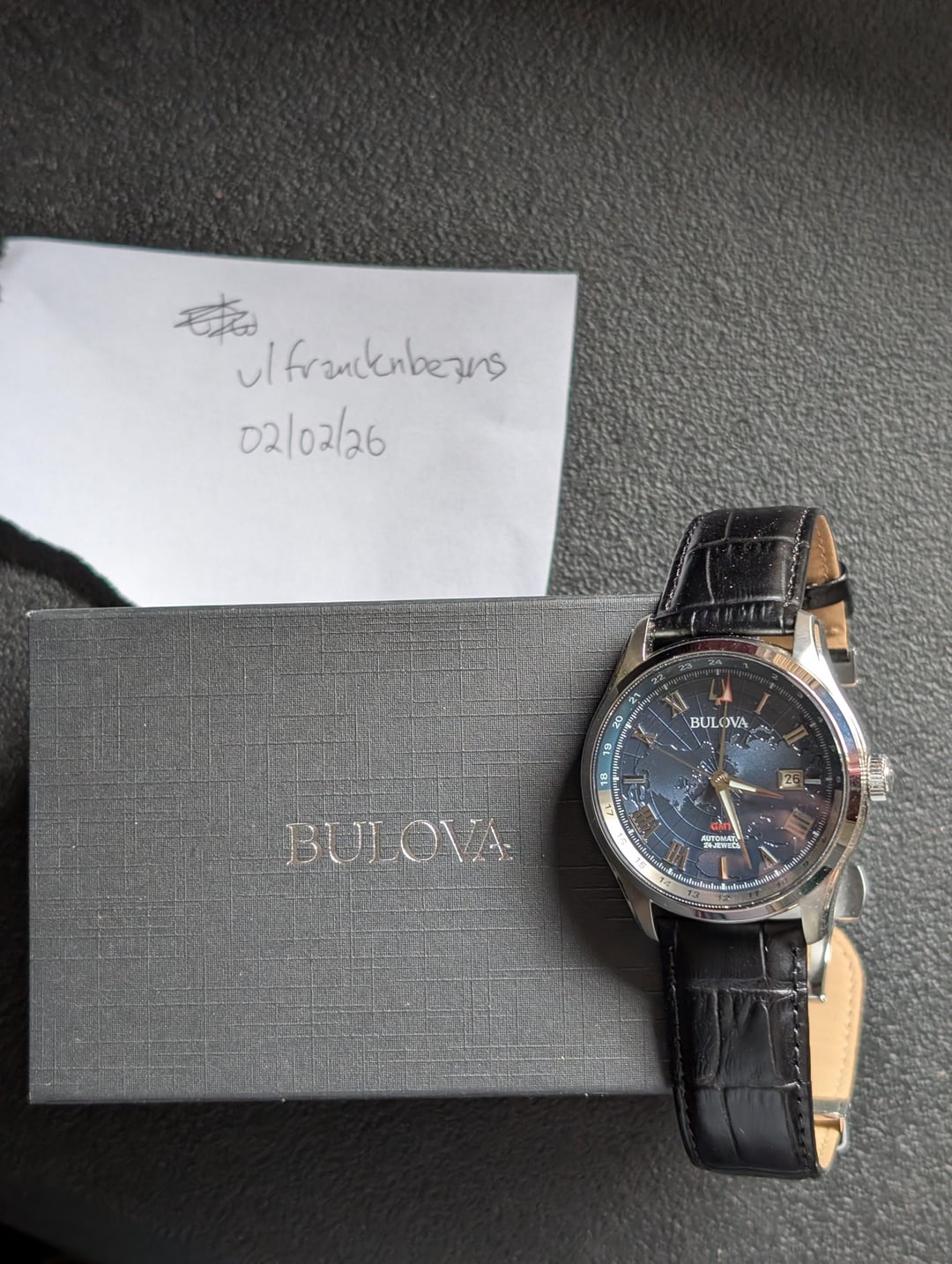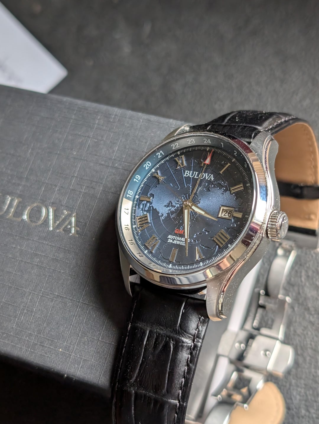 For sale, my Bulova Wilton GMT. Watch is in like new shape and comes with everything shown. Looking for $350 obo shipped to you. Cheers.