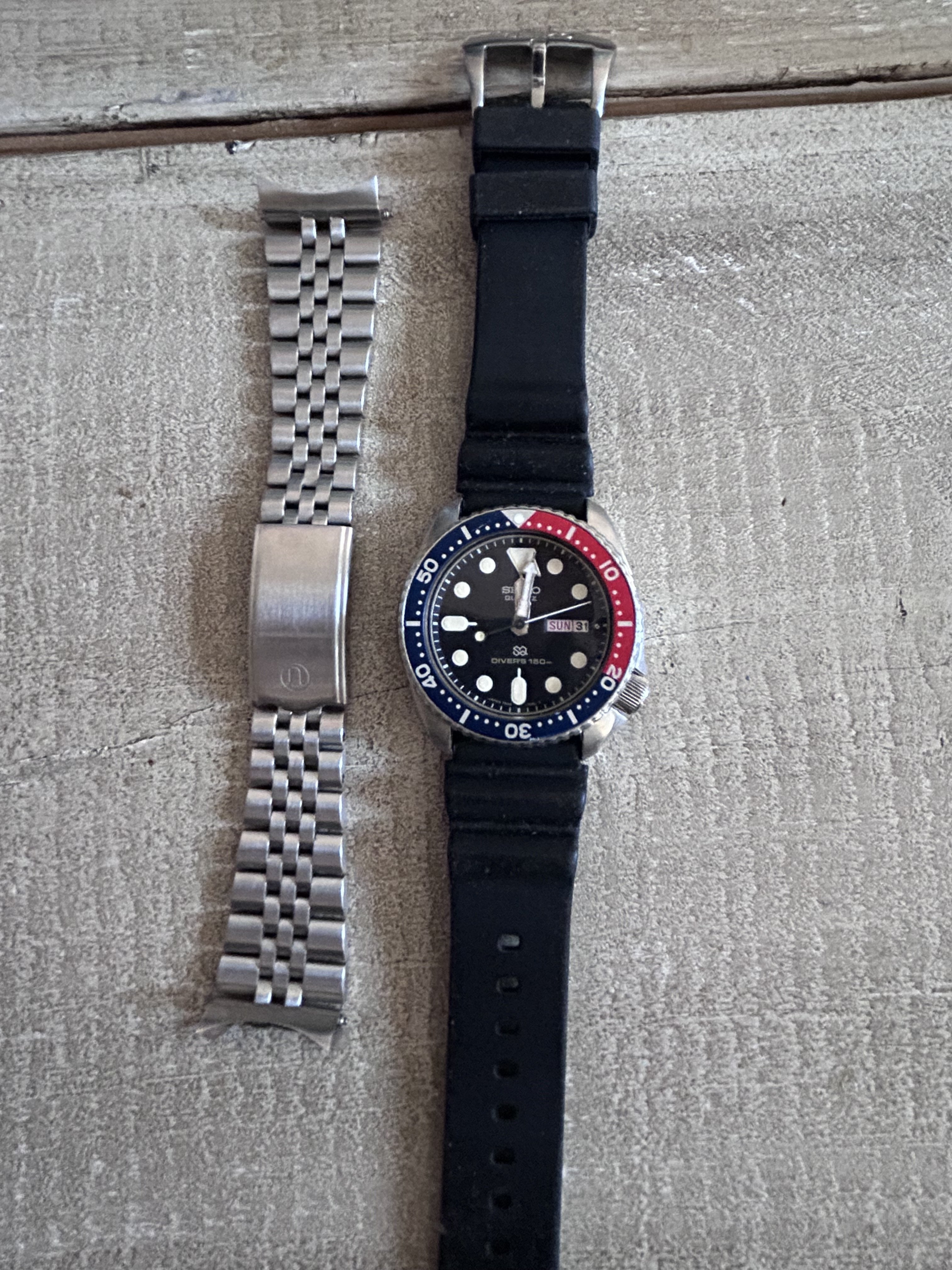 Selling a Seiko 7548-700F diver with rare Suwa dial. Suwa symbol 3 o’clock and 6. Dial is a deep blue. Most of these came with a black dial. This is definitely a rare bird. Working as it should taking accurate time. Battery 6 months old. Will come on a supple, super comfortable silicon stock strap and will come with an Uncle Z199 stainless steel bracelet. Bracelet itself is $79. Asking $375 plus $15 for shipping via USPS Priority mail. CONUS sale only.