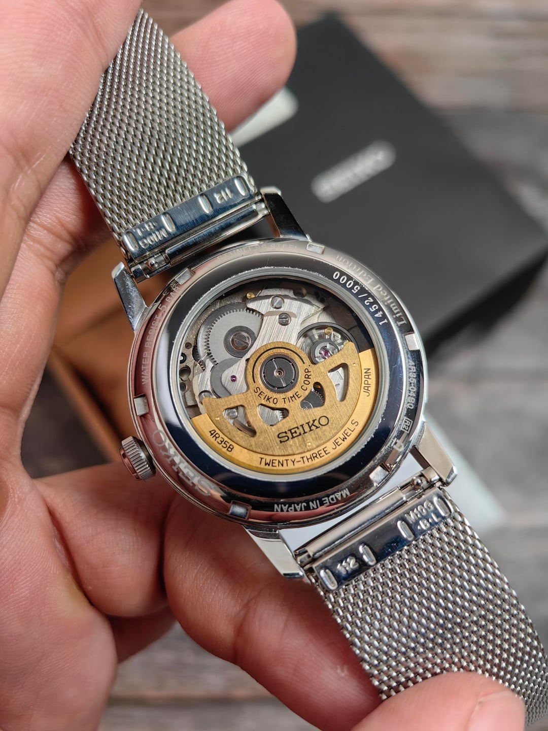 Would rate 8.9/10 and in great condition. Watch has minimal marks on the case and caseback of the watch. The watch has a steel case on original Seiko leather strap and original Seiko mesh steel bracelet. Hardlex crystal clean. Minimal wear on both straps and metal buckle clean.