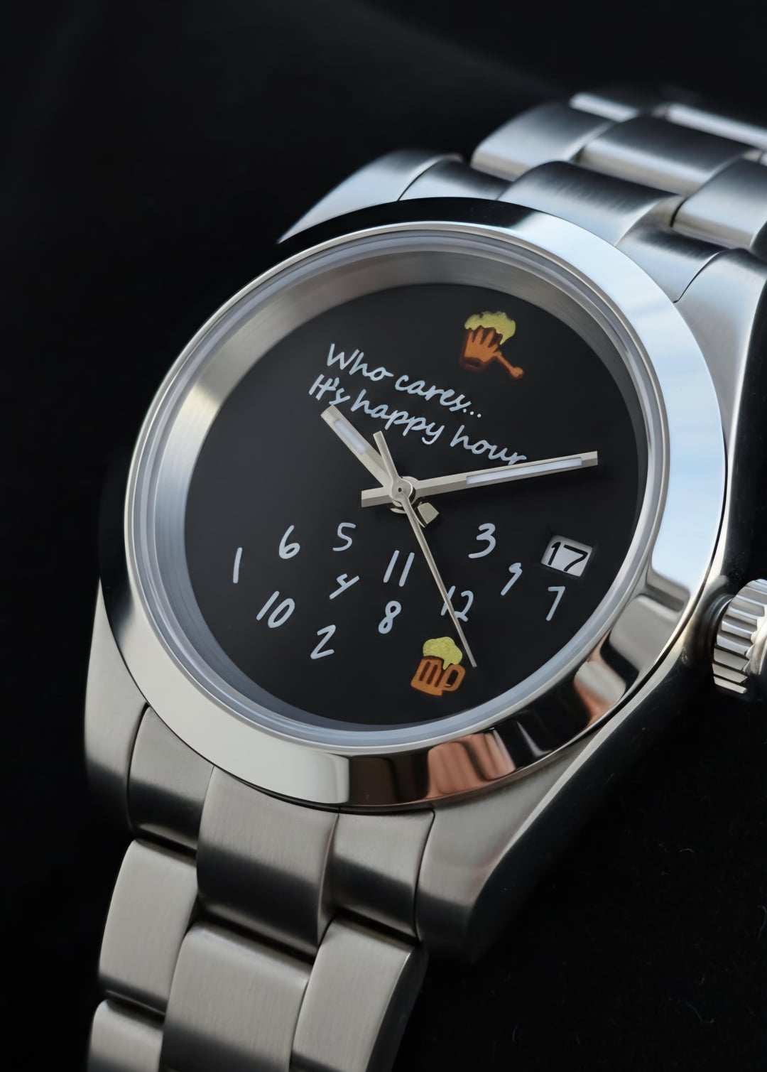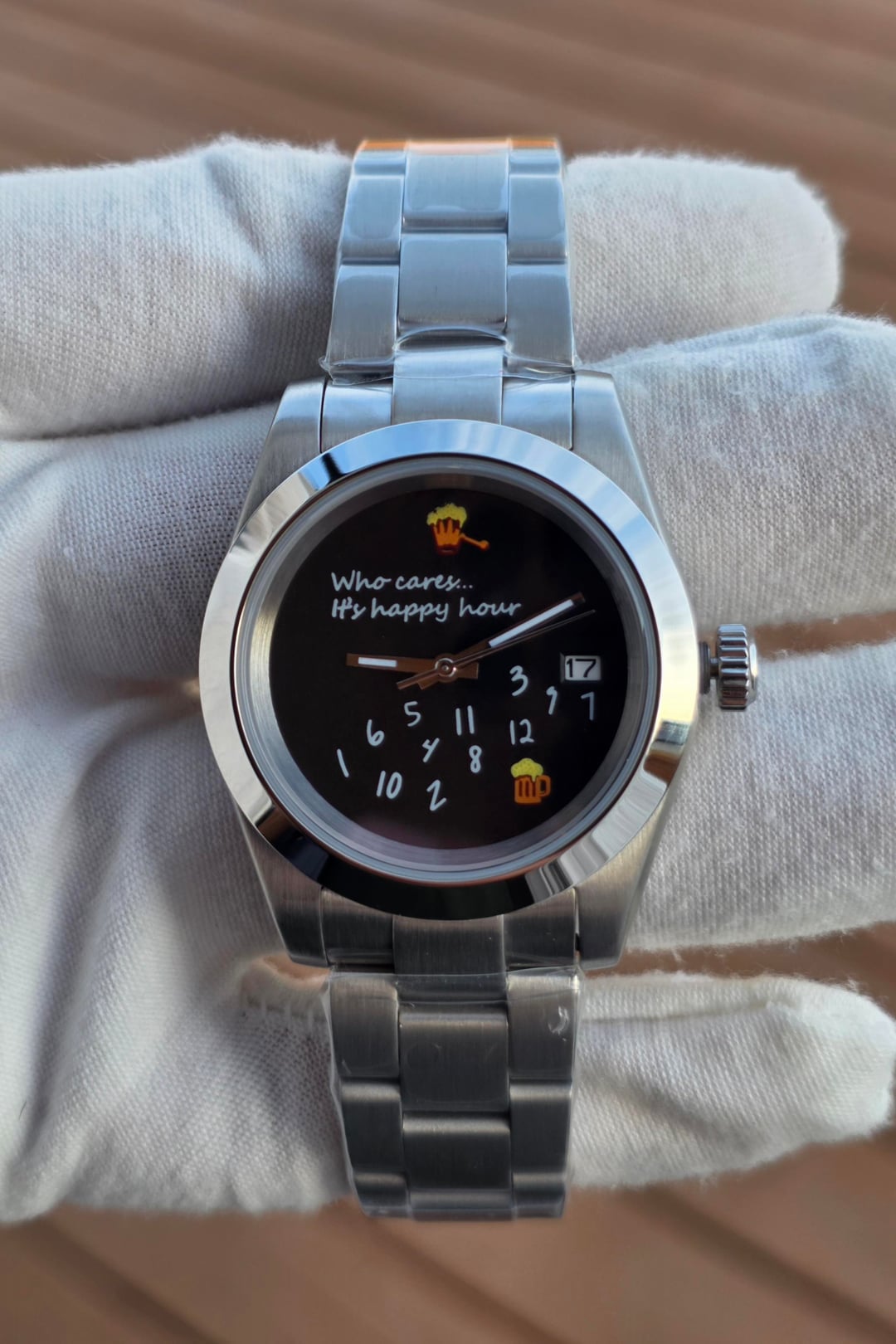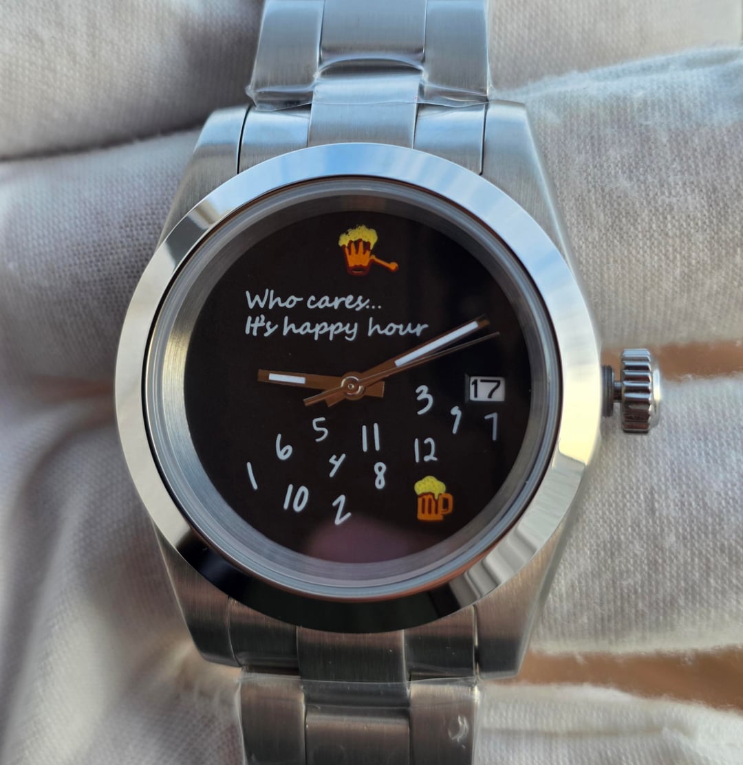[WTS] New "Who cares, it's happy hour" NH35 Automatic w/ Signed Crown and Clasp (40mm)