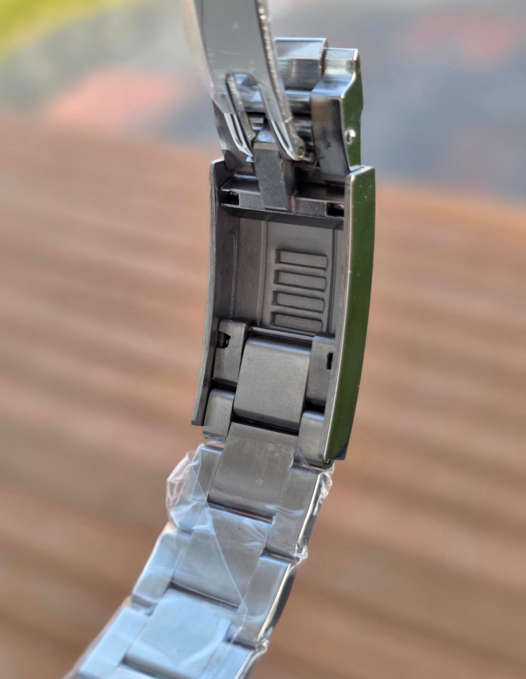 Features include: * Sapphire crystal * Screwdown crown * Screwdown caseback * Glide-lock (on-the-fly adjustable clasp) * Screw-in links (easily removable links) * Full links * 80m water resistance (tested)