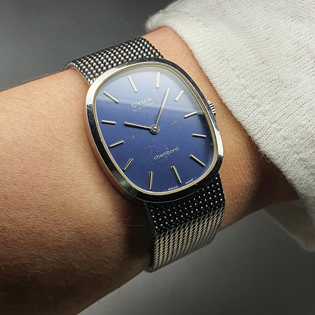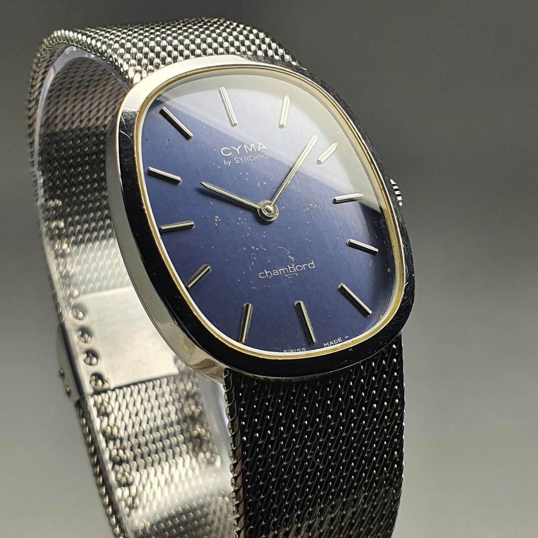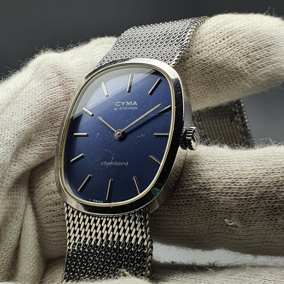![Thumbnail [WTS] CYMA by Synchron "Chambord" Swiss-Made 1970s Manual Wind Ellipse, Peseux cal.7001 Speckled Dial, Signed Clasp and Crown $230 (message me for details/description if you can't see in comments) 1](https://cdn-cf.watchpatrol.net/120x120/img/full/5bde646714c3b7279dd8c81e7d8058736ae6058b.jpg)