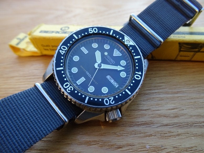 • It is sold on a Grey NATO strap 18mm wide.