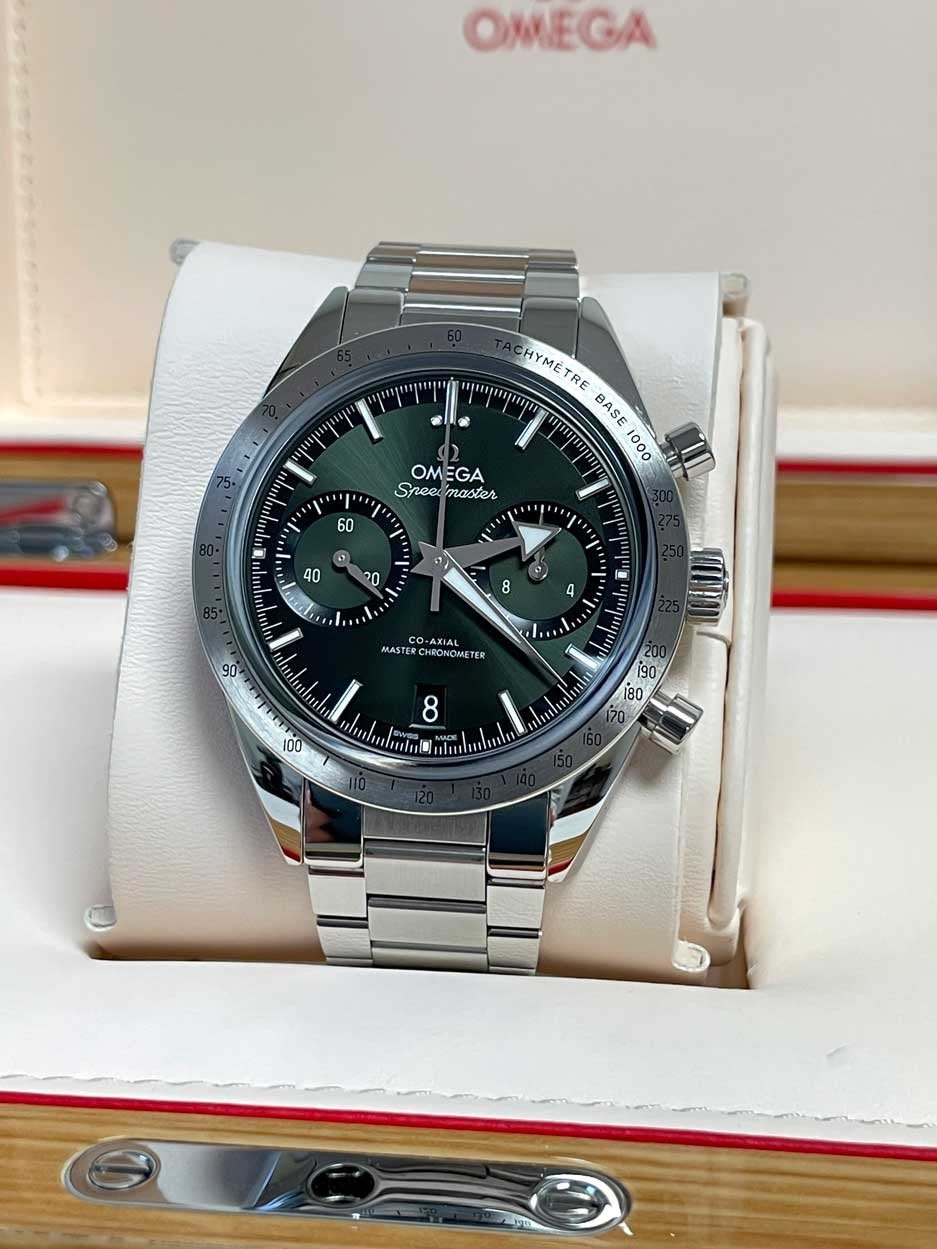 For sale is a mint condition Omega Speedmaster 57 with stunning green dial. It comes as a complete set with all box, book, links, cards, Omega warranty card dated 10/2022. Asking $5700