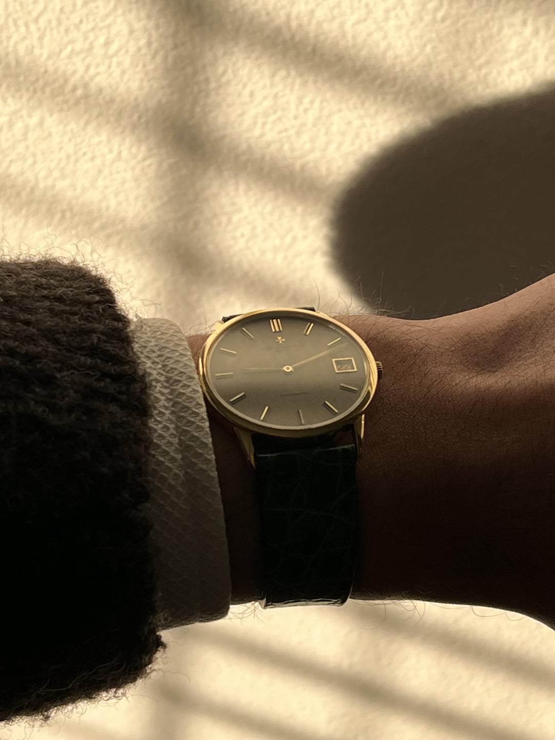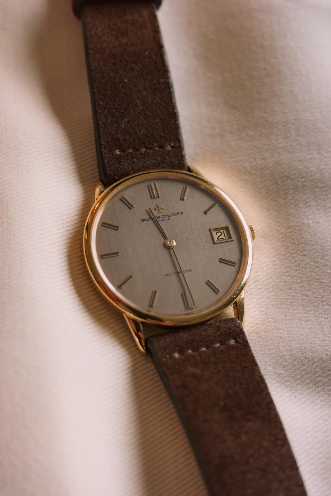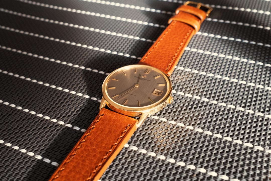 Up for sale a beautiful vintage Vacheron Constantin Patrimony. This is a beautiful thin dress watch that comes with the geneva seal K1121 movement. Beautiful yellow gold 34mm case with a rare taupe brushed dial that goes from a light gray to a dark depending on light or strap pairing. It’s really a bit of strap monster that completely changes the feel of the watch from formal to casual. It went to Vacheron in Switzerland for repair to the bridge, full seal replacement, service, new crystal as well as restoration work on the dial and case a few months back. Unlike a lot of these watches that show up by watch dealers that claim they are serviced this one has had the factory do the work, not a 3rd party watchmaker. I can provide documentation with purchase. I’ll probably regret selling as I’ve already listed it before and ended up keeping it. Comes with a brand new brown strap from the 1st photo. Happy to answer any questions. Looking for $8k net. Brown leather strap and VC case included. Open to trades for Rolex Day Date, Pateks and other dress watches.