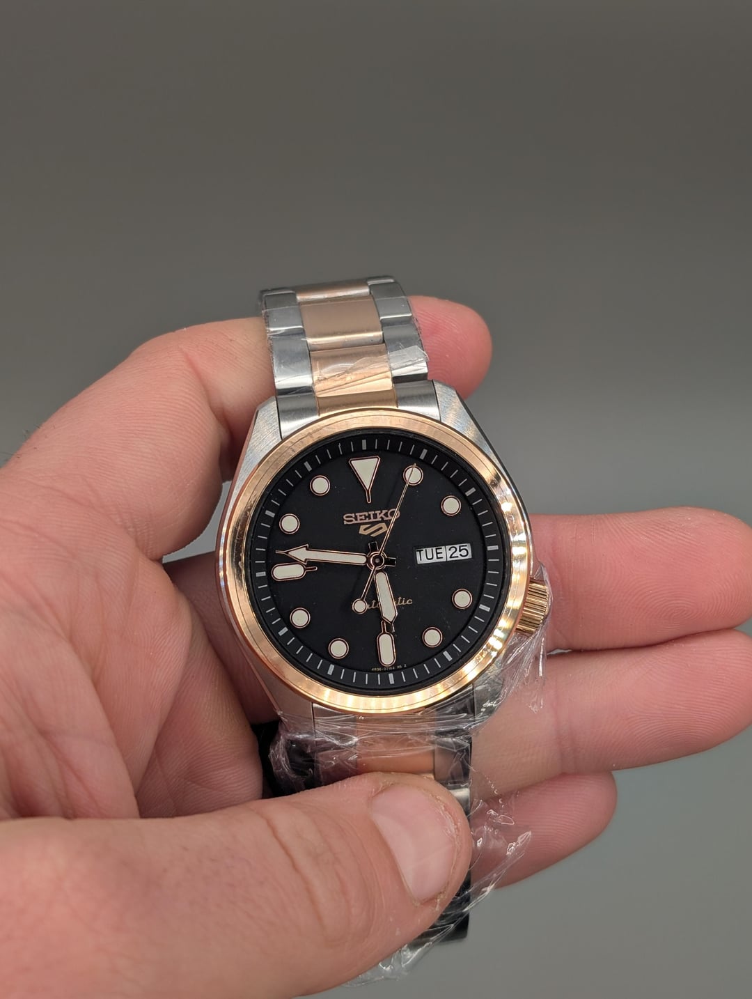 Hi friends. Today I have a SRPE58 for sale. Looking for $225obo shipped. This rose gold two tone is a pretty neat change up from the usual. Watch us brand new, full kit. Feel free to reach out with any questions. Cheers *4R36 Automatic movement Case 40mm Thickness:11.5mm Lug-to-lug:44.6mm Hardlex Crystal Water Resistance 10 bar