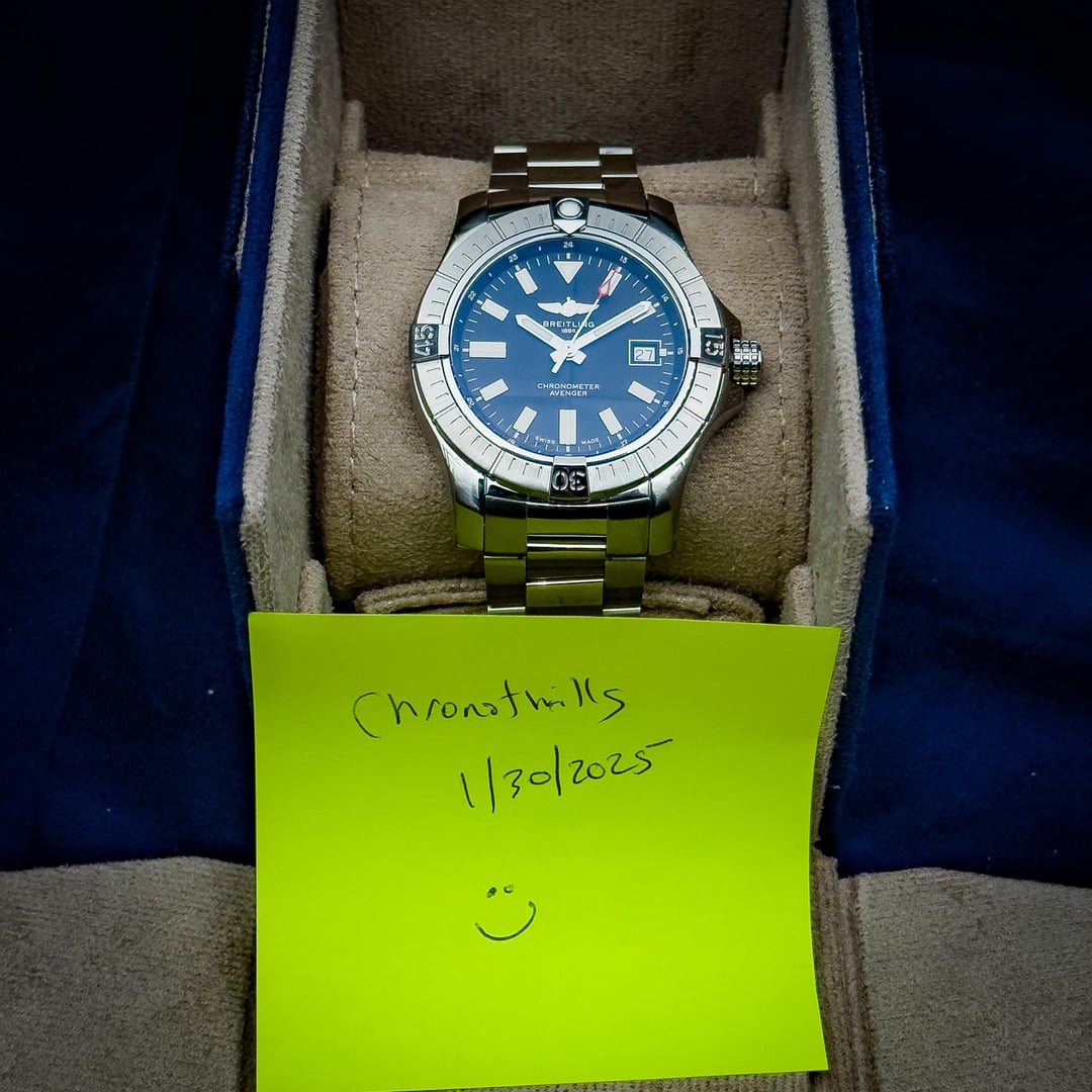 ![[WTS] Breitling Avenger Black Dial w/ Steel Bracelet 43mm A17318 Full Set 2](https://cdn-cf.watchpatrol.net/600x600/img/full/f230268534173c9aa8fb481353f97e3a3664659d.jpg)
