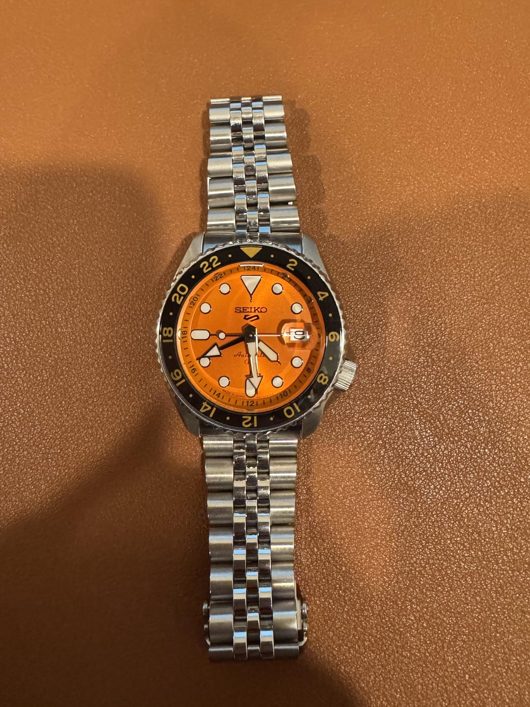 This is a catch and release sale for my preowned (lightly used) Seiko 5 Sports GMT reference SSK005. Keeps really great time at +/- 2 seconds a day. Cannot seem to find the box it came in so this will be a watch and strap only sale. Comes with three never worn FKM straps and upgraded milled clasp already installed. Selling for $220 with shipping included for this in the CONUS only. No trades. Payment via PayPal F&F or Venmo. Let me know if you have any questions!