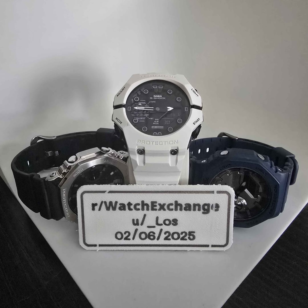 Selling some of my less worn Casioaks. * **SciFi World** \- $100 - Great watch, looks like something out of Portal. Just doesn't get enough wrist time. * **Metal Tough Solar** \- $125 - I swapped the tough solar Bluetooth module out of another watch into this one so it syncs up with the app. * **Navy** \- $75 - Standard navy casioak All prices are shipped CONUS, will accept Zelle/PayPal/Venmo. Not looking for trades, but will accept reasonable offers.