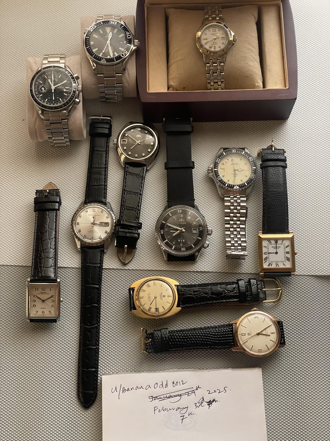 Up for sale are two Omega timepieces in good condition, both featuring stainless steel bracelets. Omega Seamaster 2254.50 “Peter Blake” – This automatic model features a 41mm stainless steel case with a black wave dial. The bracelet fits wrists up to 7 inches, but with the extender, it can accommodate approximately 7.3-7.4 inches. The watch is in good condition with signs of wear, including light scratches on the bezel. Asking: $2,250 shipped. Omega Speedmaster 3520.50 – An automatic chronograph with a 39mm case diameter, featuring a day/date window. The bracelet fits wrists up to approximately 7.1-7.2 inches. The watch is in good condition with light signs of wear. Asking: $1,900 shipped. Watches will be shipped via FedEx. Note: Shipping is scheduled within 2-3 days of payment. Payment accepted through PayPal Friends & Family or Zelle only.