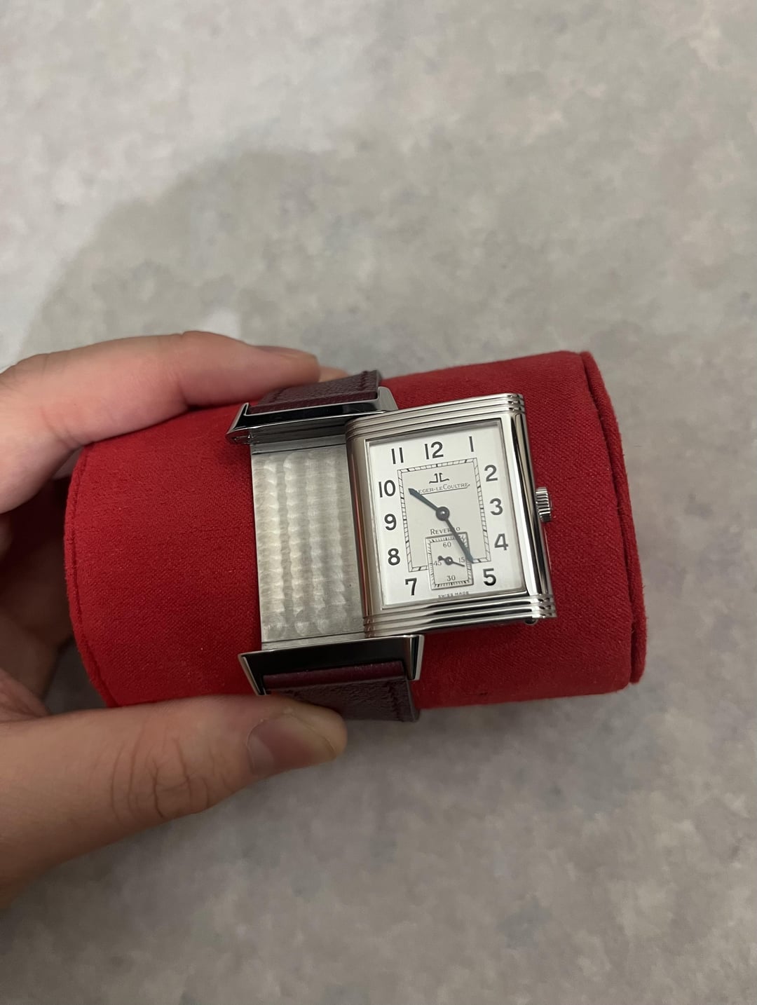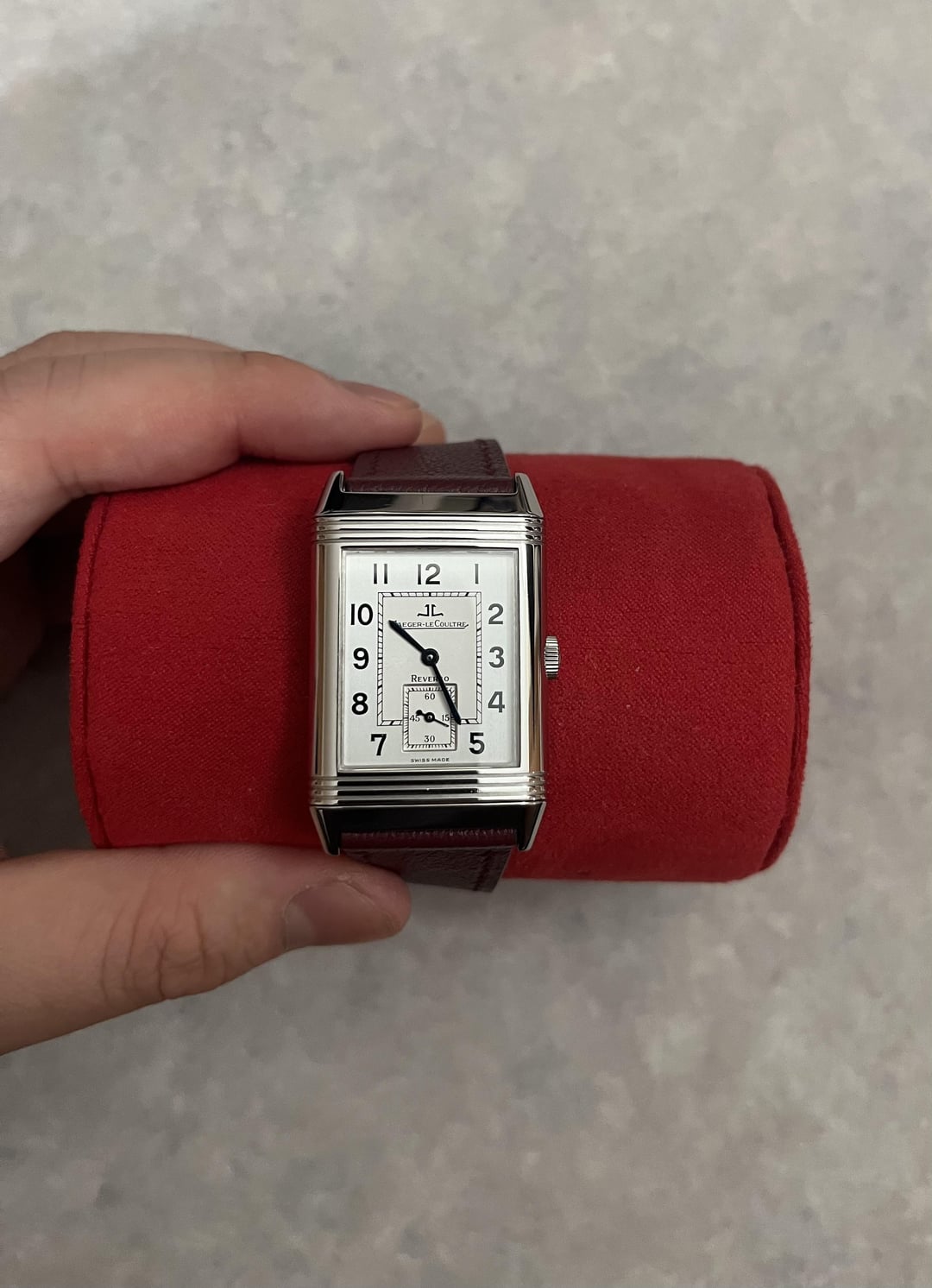 Jaeger LeCoultre Reverso Grand Taille Ref. 270.8.62 Production Year: Circa 2000 Case Size: 26mm x 42mm Dial Color: White Case Material: Stainless Steel Movement: In-House Manual Winding JLC Caliber-822 Hello everyone, I am here looking to sell my JLC Reverso Grand Taille. I bought it from a great seller from WatchExchange back in the summer of 2024 and really love it, but decided that I’d like to move onward from it. Condition: As you can see in the pictures, the case is in pretty good shape with regular wear that is normal on a high gloss polish watch. It originally came with a black JLC Genuine Alligator Leather Strap, but I put a new maroon colored Delugs strap worth around $100. The BEST thing about this watch though is the absolutely perfect dial. Despite being around 25 years old, the dial is absolutely perfect even up very close in harsh lighting. I will be sending it with a Wolf brand watch roll and it will be shipped with insurance. Looking for $4,500 No Trades Preferred payment method: Bank wire Feel free to make an offer or ask questions. I understand that buying online can be scary so if you have any concerns let’s talk about it!