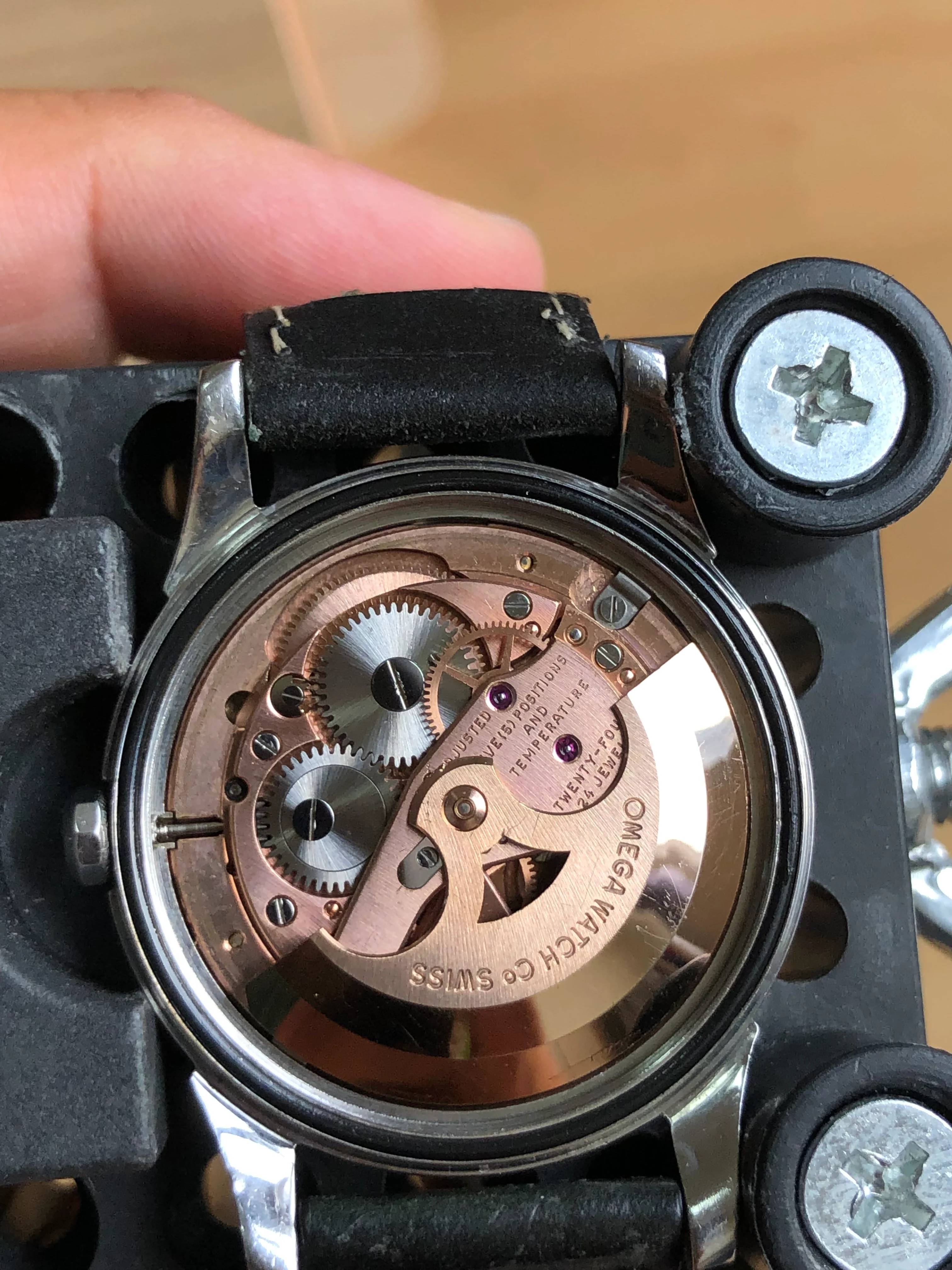 - Strap: Leather strap with aftermarket Omega buckle.