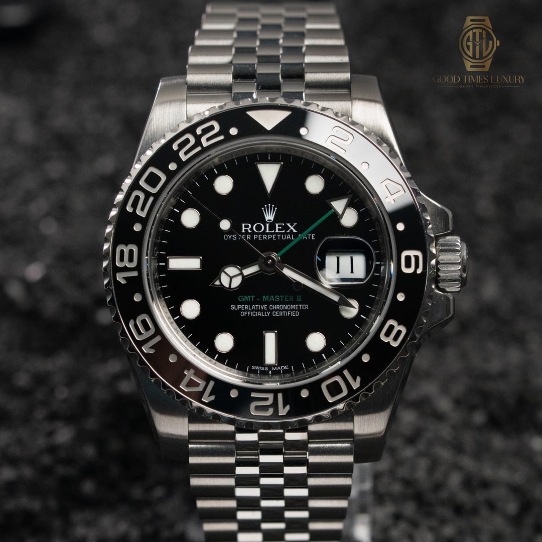 Timestamp and Timegrapher Photo: https://imgur.com/a/fp6pafx 🌟 Rolex GMT-Master II 116710LN on Jubilee Bracelet 🌟 The 116710LN is a classic symbol of luxury and style, providing a perfect balance between practicality and high-end craftsmanship. Known for its robust and reliable performance, this watch features a 40mm case, scratch-resistant ceramic bezel, and automatic movement. It offers a water resistance of 100 meters and boasts a distinctive dual-time zone function, making it ideal for globetrotters and adventurers alike. ✨ Features: * Reference: 116710LN * Case Size: 40mm * Bezel: Ceramic * Movement: Automatic * Water Resistance: 100 meters 🕰️ Condition: Excellent Pre-Owned Condition. Runs great(see timegrapher photo) 💳 Warranty Start Date: 2013 📦 Set includes: - Double Boxed - Warranty Card - Manuals 💰 Price: $12,495+Shipping via Wire/Zelle/USDT 💳 All Credit Cards accepted. 3.5% Processing Fees and Conditions apply. 📍 Location: Chicago, IL 📩 Contact: - 📞 Call/Text/Whatsapp: 872-203-5209 - 📸 Insta: @goodtimesluxury - 🟦 FB: waseem.aslam.31586 (Meta Verified) ⭐️ 5-Star Reviews on Google 🌐 Google us: Good Times Luxury Chicago About me 🙋🏻♂️: My name is Waseem Aslam, Owner of Good Times Luxury. Please don’t hesitate to contact me with any questions. I’m proud to provide a top-notch buyer experience. I’ll happily provide more information/pictures/videos until you’re confident in your purchase. Thank you!