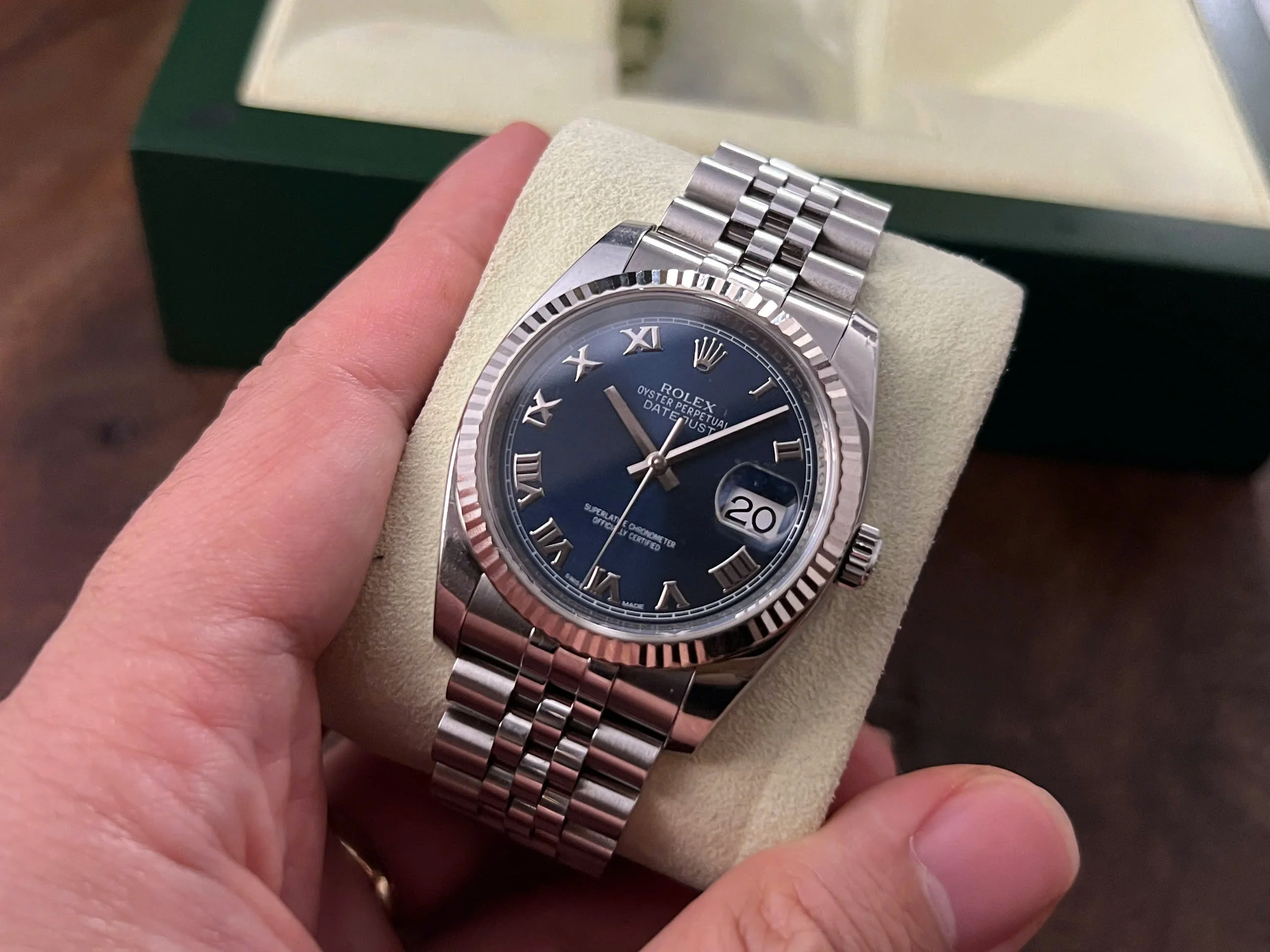 italiano![[REDUCED] 2013 Rolex Datejust 116234 blue roman dial Box & Papers - Serviced 1](https://cdn-cf.watchpatrol.net/600x600/img/full/ee5966c85a0e8e0dbe0b1ecb2ef70c7a6b1dbe19.jpg)