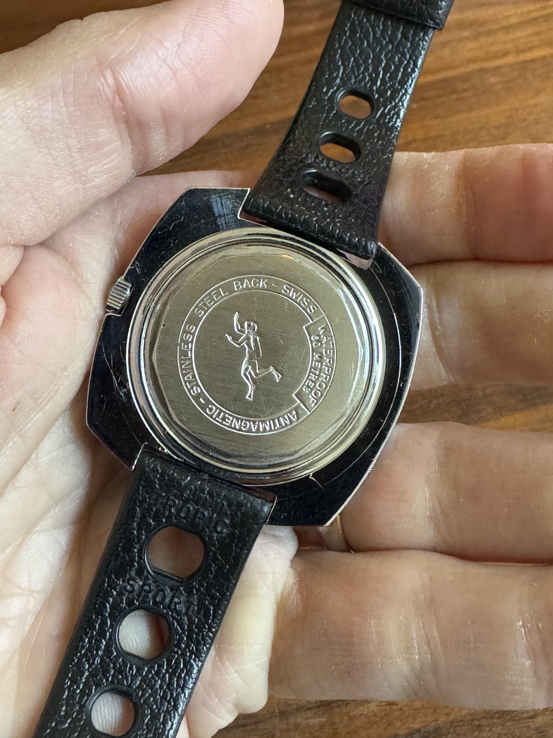 Hey All! This is such a cool watch! There are only 2 examples of this dial online and only 3 examples of this watch online. This is the only one for sale, and the only one serviced! It is an ETA based skindiver. Dimensions are 43.5 long, 44 wide, 20mm lug width. Photos show a vintage Tropic Sport that I can include for an additional $300, otherwise I will include a generic Tropic Sport from CNS. \*\*Price:\*\* $1400 (USPS Registered Mail or send me a label to print) \*\*Terms:\*\* PayPal, wire, venmo. F+F or buyer covers G+S 3% fee. (No eChecks please)