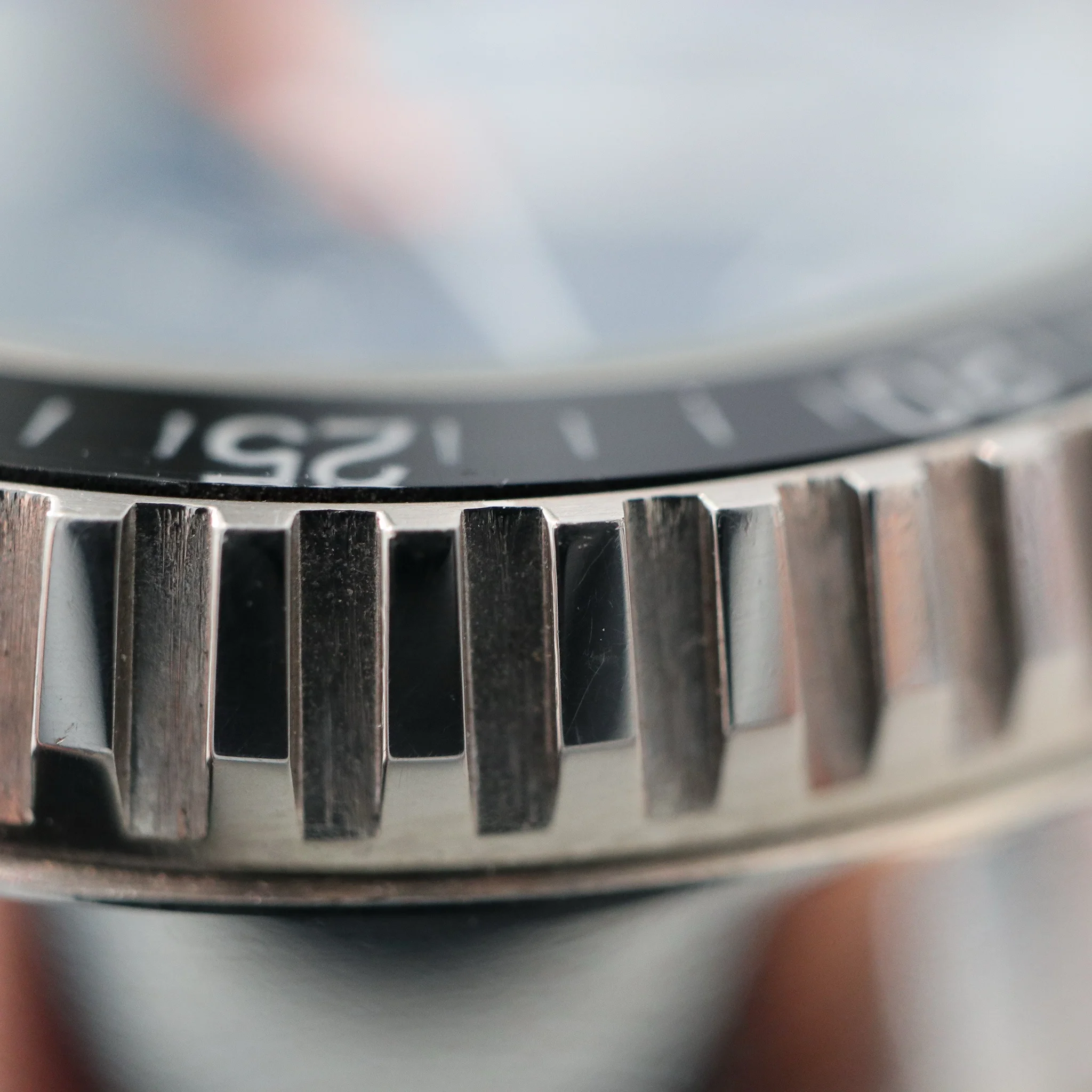 The condition is thus stunning. Very sharp lines on the stainless steel case including beautiful contrast between polished/brushed surfaces. Signed crown screws well. Setting time and date (quickset) goes flawlessly. Flawless bezel rotates with steady clicks. Flawless caseback with reference number perfectly readable. The crystal has 1-2 very small slight scratches. The blue dial is perfect with gorgeous yellowed tritium. Hands are equally flawless with tritium evenly discolored in the same vanilla hue. Everything is 100% original.
