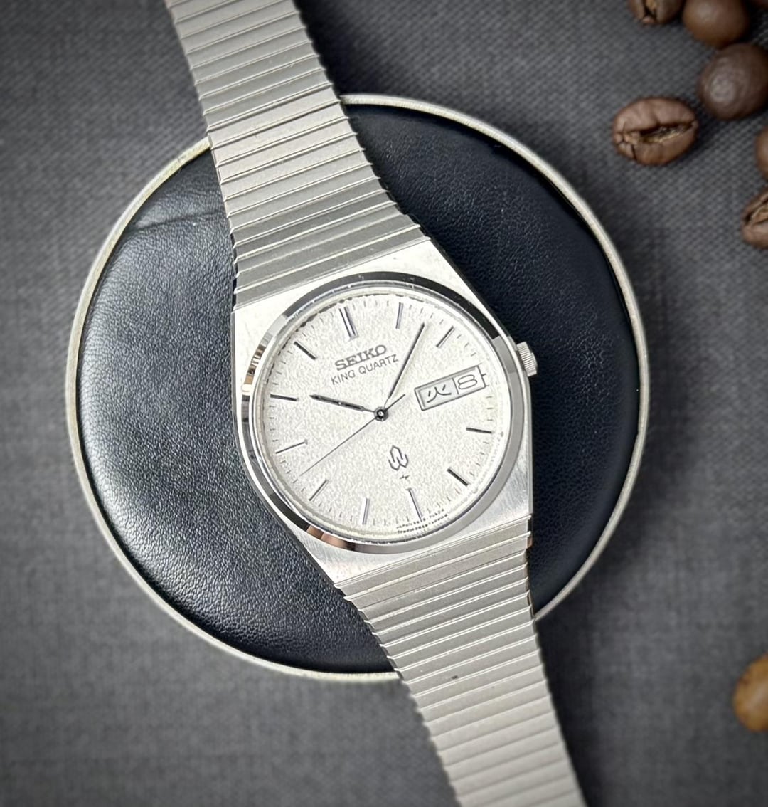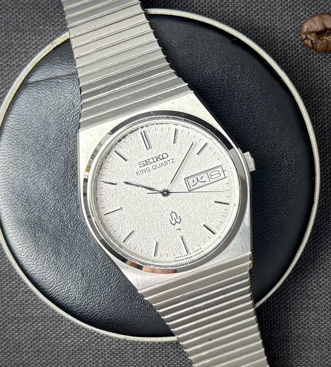 | Rare Seiko King Quartz 5856-8000 White Textured Dial Day Date Vintage Watch Men hugo_time (688) |