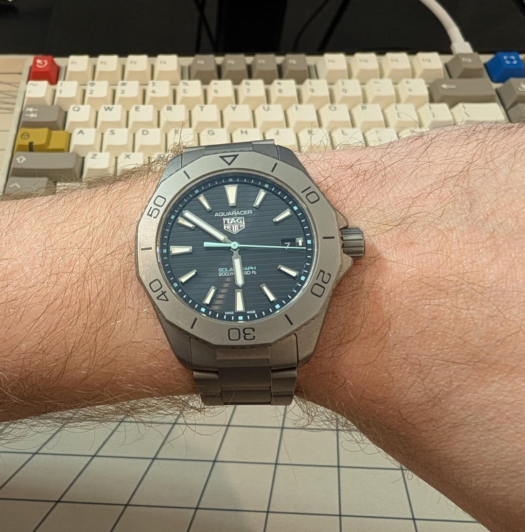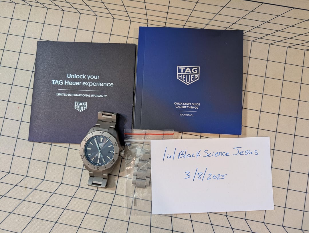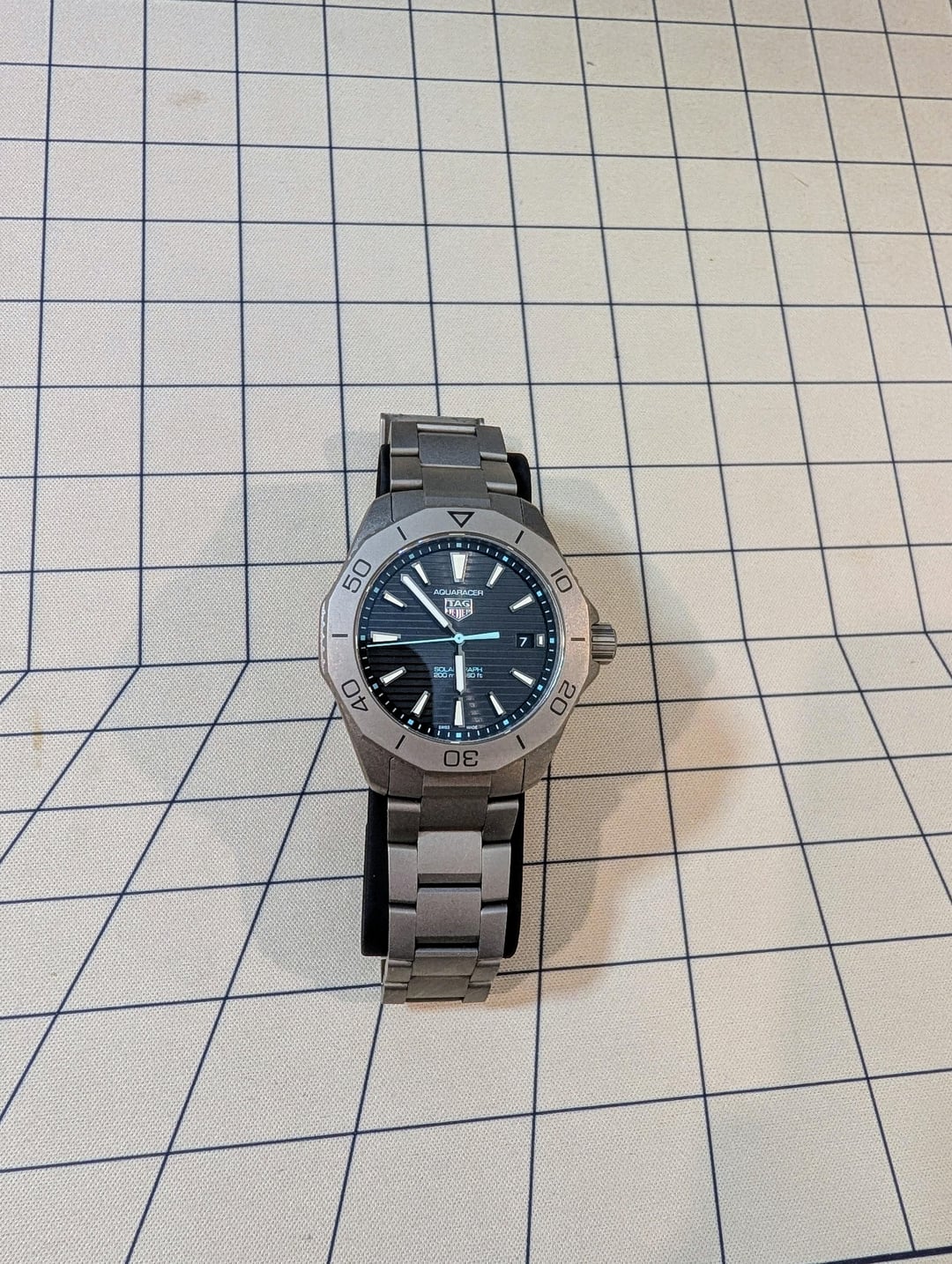 Looking for ~~$1850~~ ~~$1800~~ $1750 net to me after shipping and fees. Cheapest listing on Chrono24 is $2172 (not including tax and shipping). Not looking for trades at this time. The Solargraph is in great condition. Some very light desk diving marks that I tried to capture in the pictures, but the light has to hit it exactly right to even see it. The titanium case and bracelet are extremely durable. The lightness of the titanium also makes this a pleasure to wear everyday. The solar movement makes this a set and forget it watch. Just one minute of sunlight will give you enough charge for the entire day. Loved this watch but it's not getting enough wrist time anymore. Will come with the manual and international warranty. Watch was purchased on Feb. 24, 2023. Does not come with the box. More info can be found here - [https://www.hodinkee.com/articles/the-surprisingly-light-tag-heuer-aquaracer-200-solagraph](https://www.hodinkee.com/articles/the-surprisingly-light-tag-heuer-aquaracer-200-solagraph)