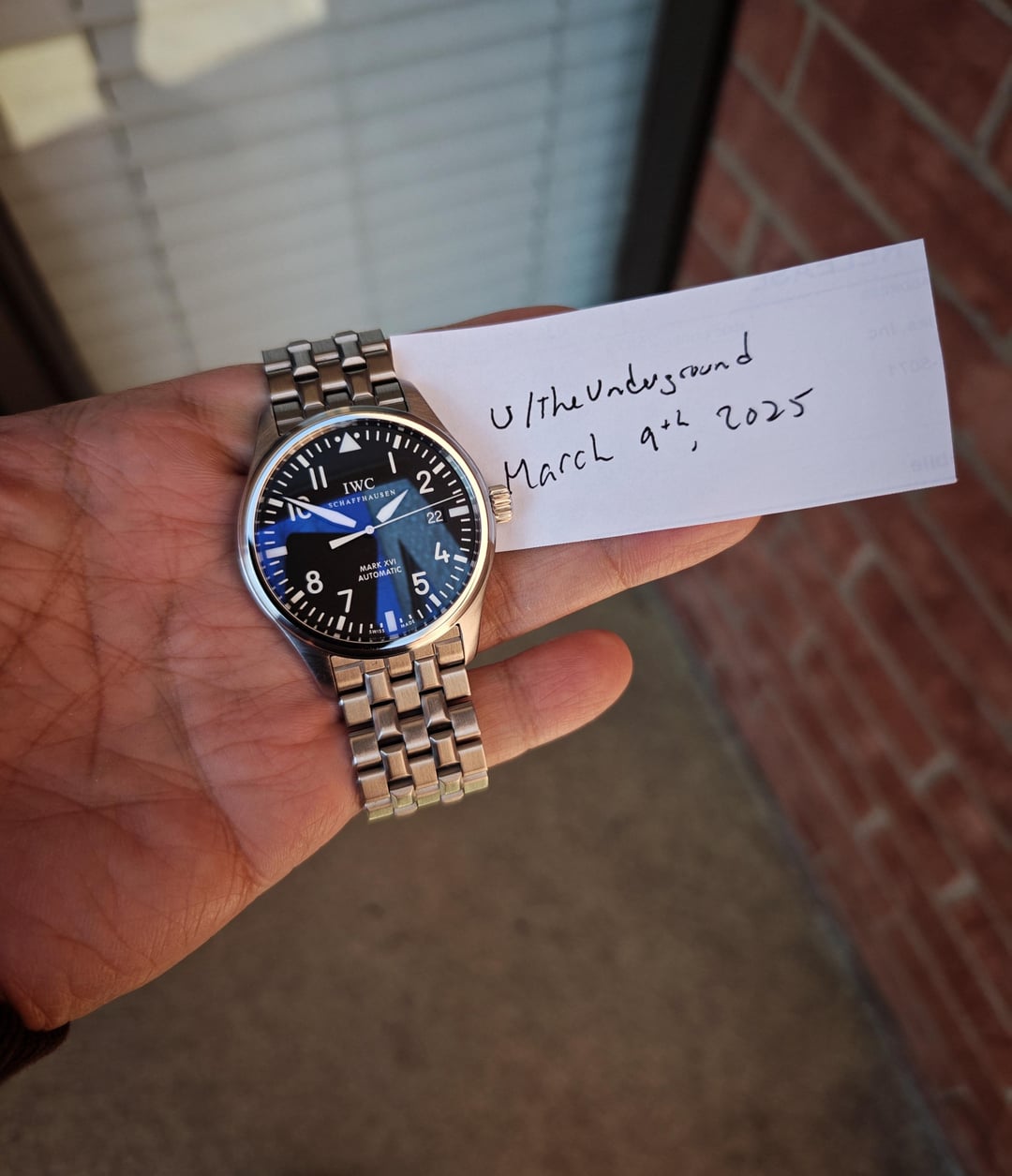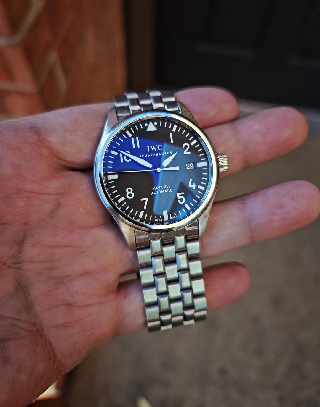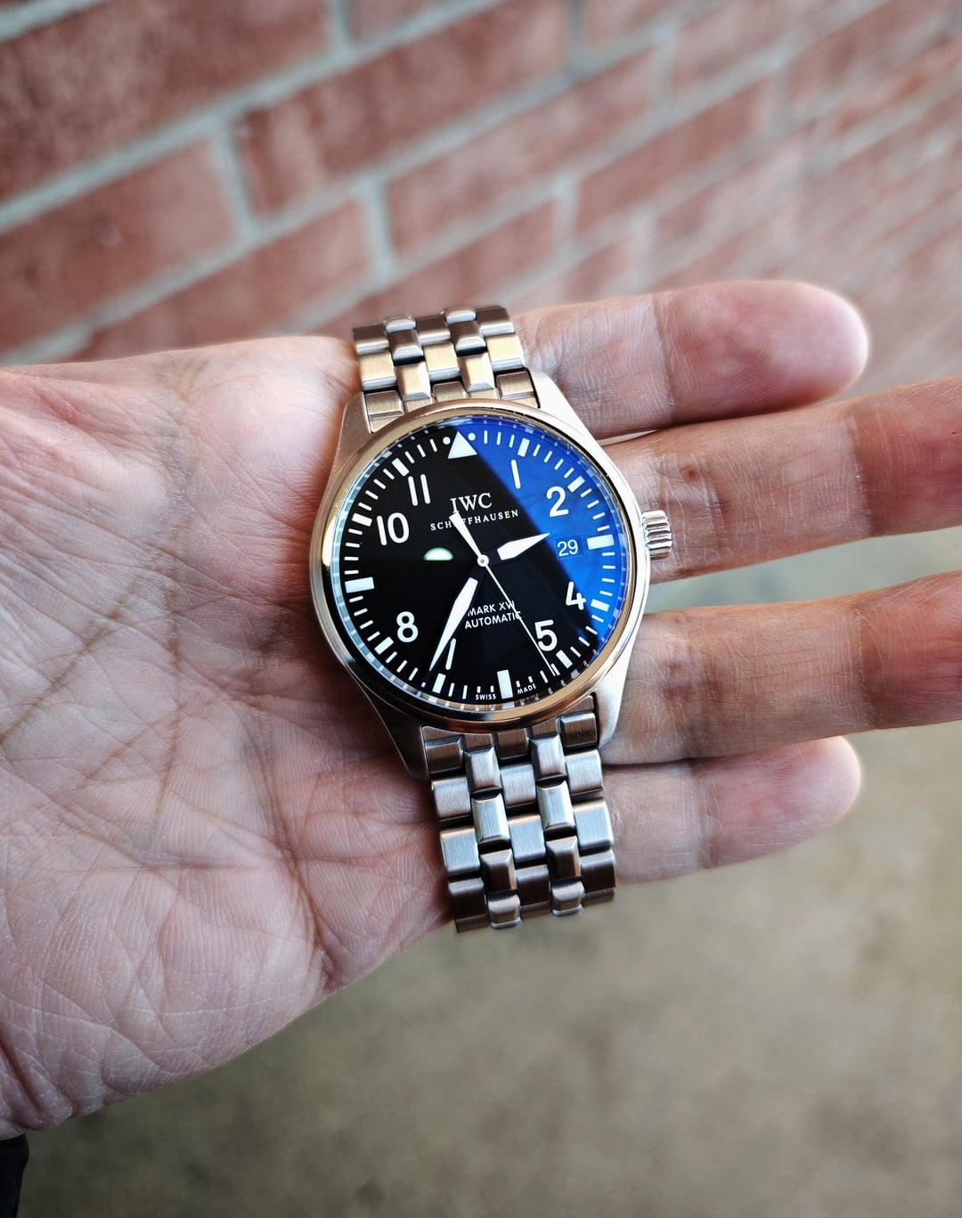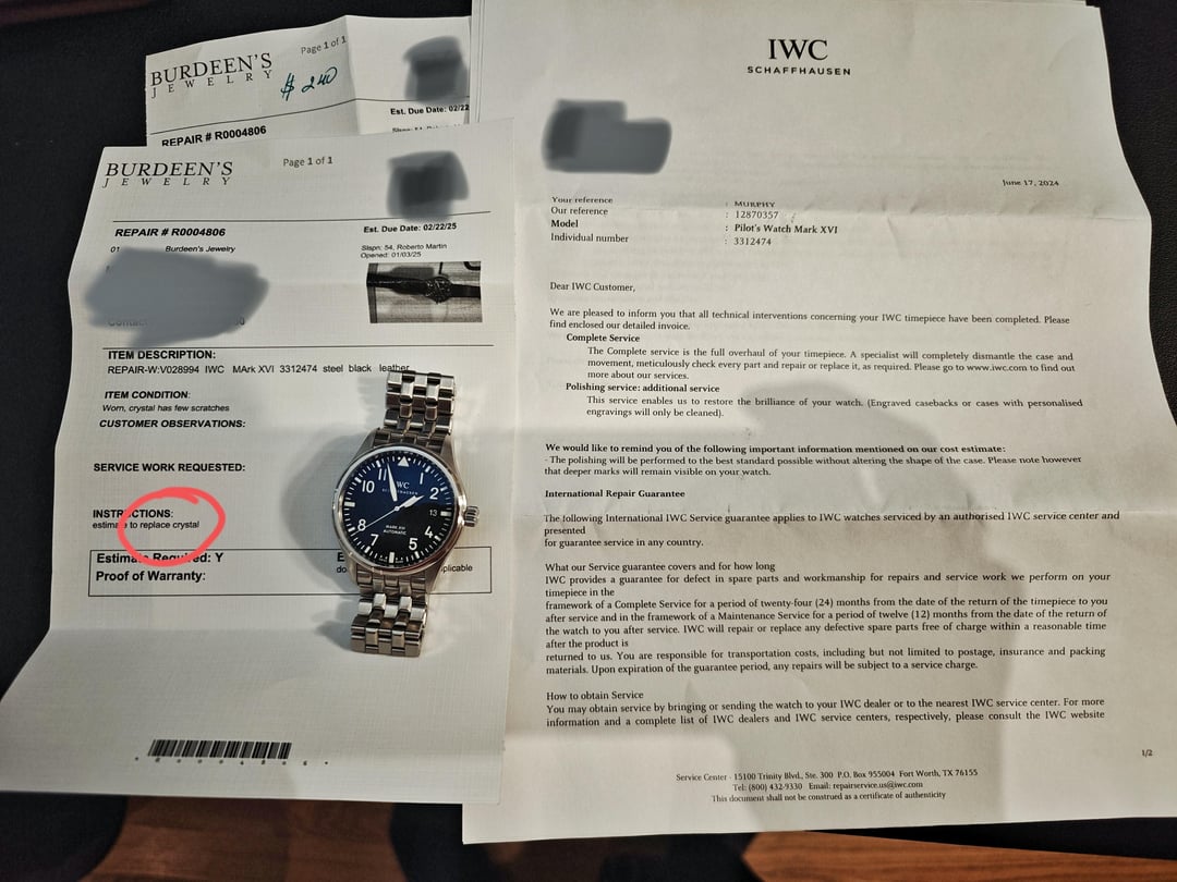 For sale is a **IWC Mark XVI on the steel bracelet.** It was **fully serviced and restored to like-new aesthetics by IWC in June 2024.** Additionally, **IWC installed a new sapphire crystal and gaskets Jan. 2025.** This piece includes over $850 in investments over the past year and is in exemplary condition, with no notable scratches apart from very light wear on the bracelet (as the bracelet was not polished), and perhaps very light marks on the back of the lugs, and perhaps a hairline or two on the bezel. The crystal is brand new (2025) and in flawless condition, with no marks on the outer AR coating. The movement is keeping excellent time. Confirmed waterproofing with new gaskets (2025) so feel free to take it for a swim! Comes in the IWC service box and papers confirming the service and crystal replacement. **Asking $2750 OBO shipped anywhere in the U.S.** I take Zelle or Venmo (sorry, no PayPal) or Cash if you're willing to meet in Chicagoland. Not interested in trades. I've sold many watches here, including two 2024 Rolexes, a 2023 Speedmaster, Cartier Tank, Tudors, etc. I'm happy to have a video call or other forms of confirmation with you. Buy with confidence! **Full album (includes VIDEO)** at: [https://imgur.com/a/wts-iwc-mark-xvi-fully-serviced-new-crystal-gaskets-2025-2mTLCC6](https://imgur.com/a/wts-iwc-mark-xvi-fully-serviced-new-crystal-gaskets-2025-2mTLCC6)