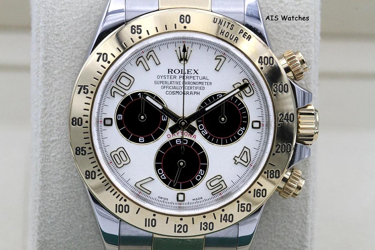 ** Rolex Daytona 116523 18K YG / SS Panda Arabic Racing Dial