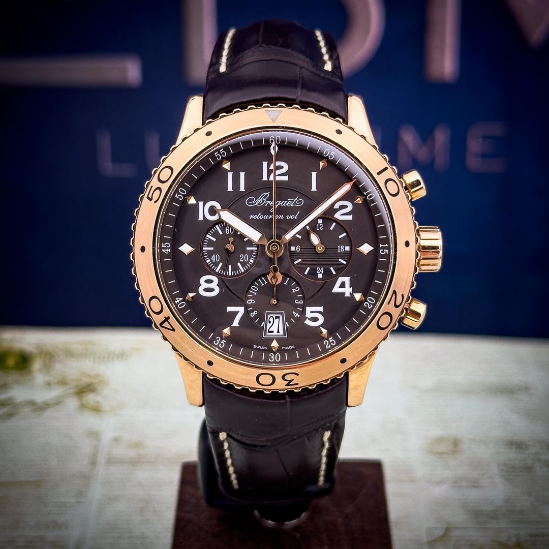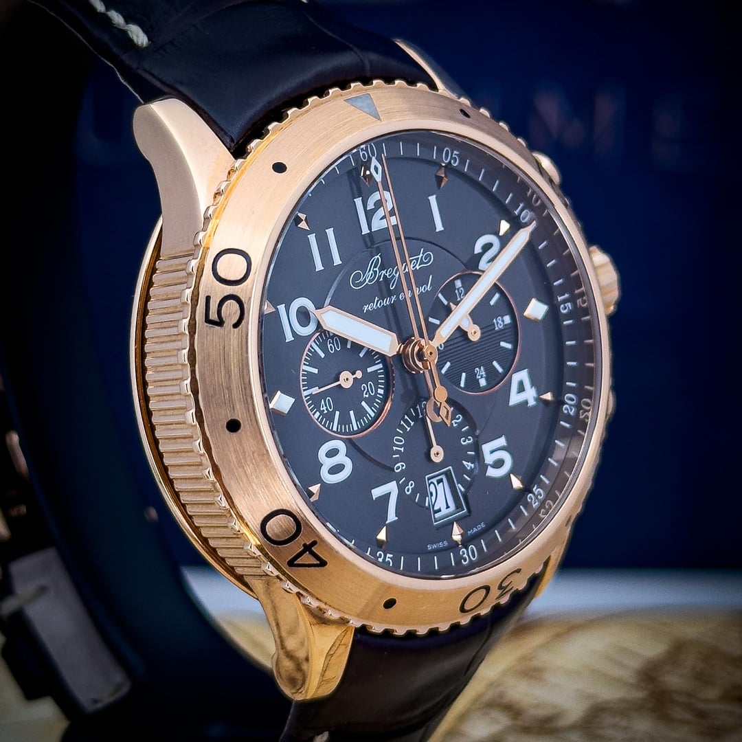 Looking to elevate your pilot chrono game? Feast your eyes on this **Breguet Type XXI Transatlantique**, reference **3810BR/92/9ZU**, crafted in **18k rose gold** — a perfect balance of tool watch ruggedness and Breguet elegance. This 42mm flyback chronograph features a slate gray dial with luminous Arabic numerals, a central minute counter, 24-hour subdial, and smooth date integration at 6 o’clock. It wears comfortably and commands attention without screaming. This piece is in **excellent condition** with only minor signs of wear. **Watch only**, no box or papers — priced aggressively for a quick sale or trade. # Details: * **Brand**: Breguet * **Model**: Type XXI Transatlantique * **Reference**: 3810BR/92/9ZU * **Case**: 42mm, 18k Rose Gold * **Dial**: Slate gray with luminous numerals * **Crystal**: Sapphire * **Movement**: Automatic Flyback Chronograph (Caliber 584Q) * **Functions**: Central minutes chrono, 12-hour totalizer, 24-hour subdial, date at 6 * **Strap**: Brown leather with 18k RG deployant clasp * **Water Resistance**: 100m * **Condition**: Excellent * **Set**: Watch Only * **Warranty**: 1-Year Limited Warranty from EBM LuxeTime 💵 **Price: $11,700** 📦 **Priority Overnight Insured Shipping included (CONUS)** 📍Located in **Boca Raton, FL** — Local F2F deals welcome Available for sale or trade. Open to modern sport models and unique pieces — feel free to shoot your offers. Offered by **EBM LuxeTime** Questions? Want a video? DM anytime.