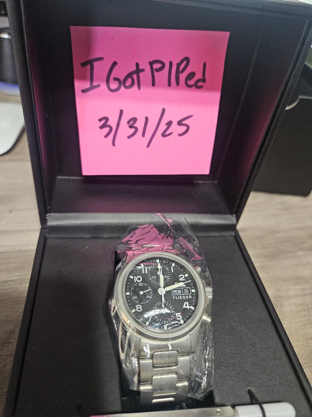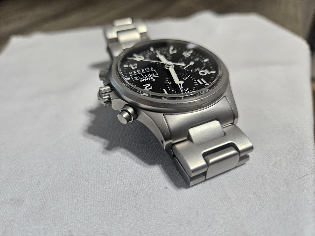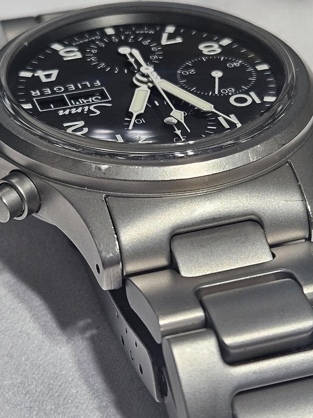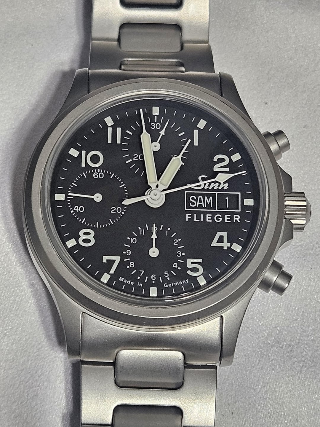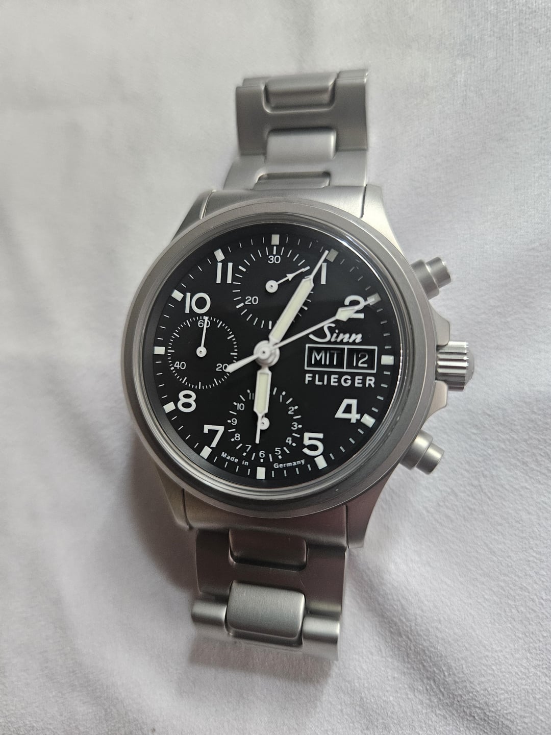 Asking for $2400 OBO via PayPal Goods & Services shipped to CONUS only. No trade offers at this time please. Information: Selling a Sinn 356 Sa chronograph watch purchased from the Sinn factory in Frankfurt on November 7th, 2023. This watch comes with a sapphire crystal, solid caseback, and is in a matte finish. Sinn's manufacturer's warranty is 2 years so the watch is still under warranty until November 7th, 2025. Days of the week are in German. Condition: Overhaul service was performed in February 2025 which include: new mainspring, new reversing wheel, new escape, new palletfork, new caseback gasket, case cleaning, water resistance testing, and a new dial. Some minor scratches and signs of wear. Selling b/c I realized luxury watches just aren't for me and to also fund an upcoming vacation.
