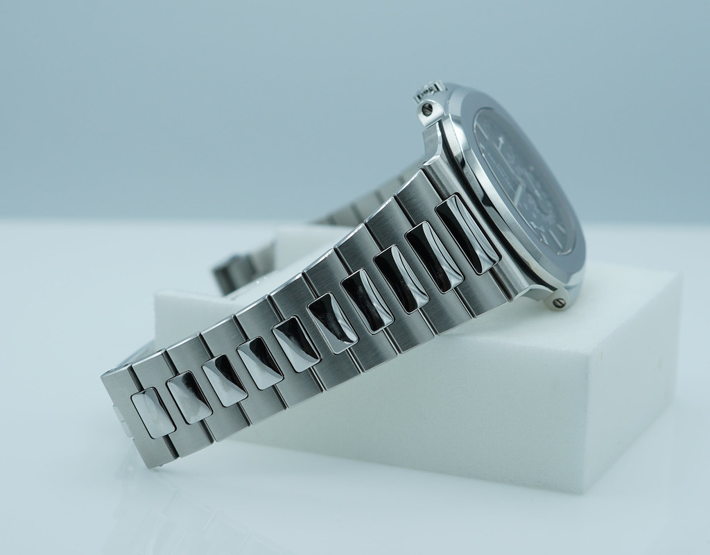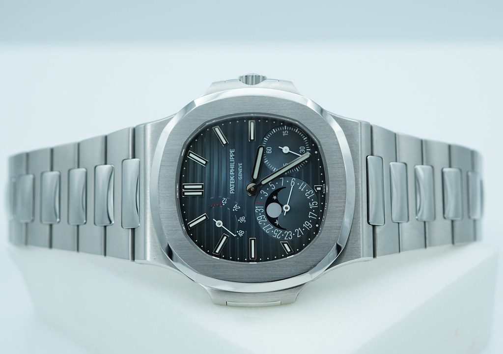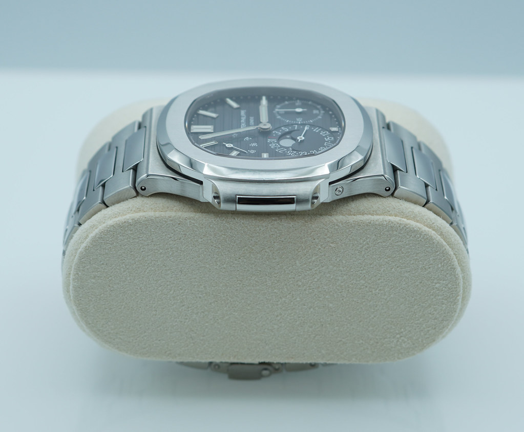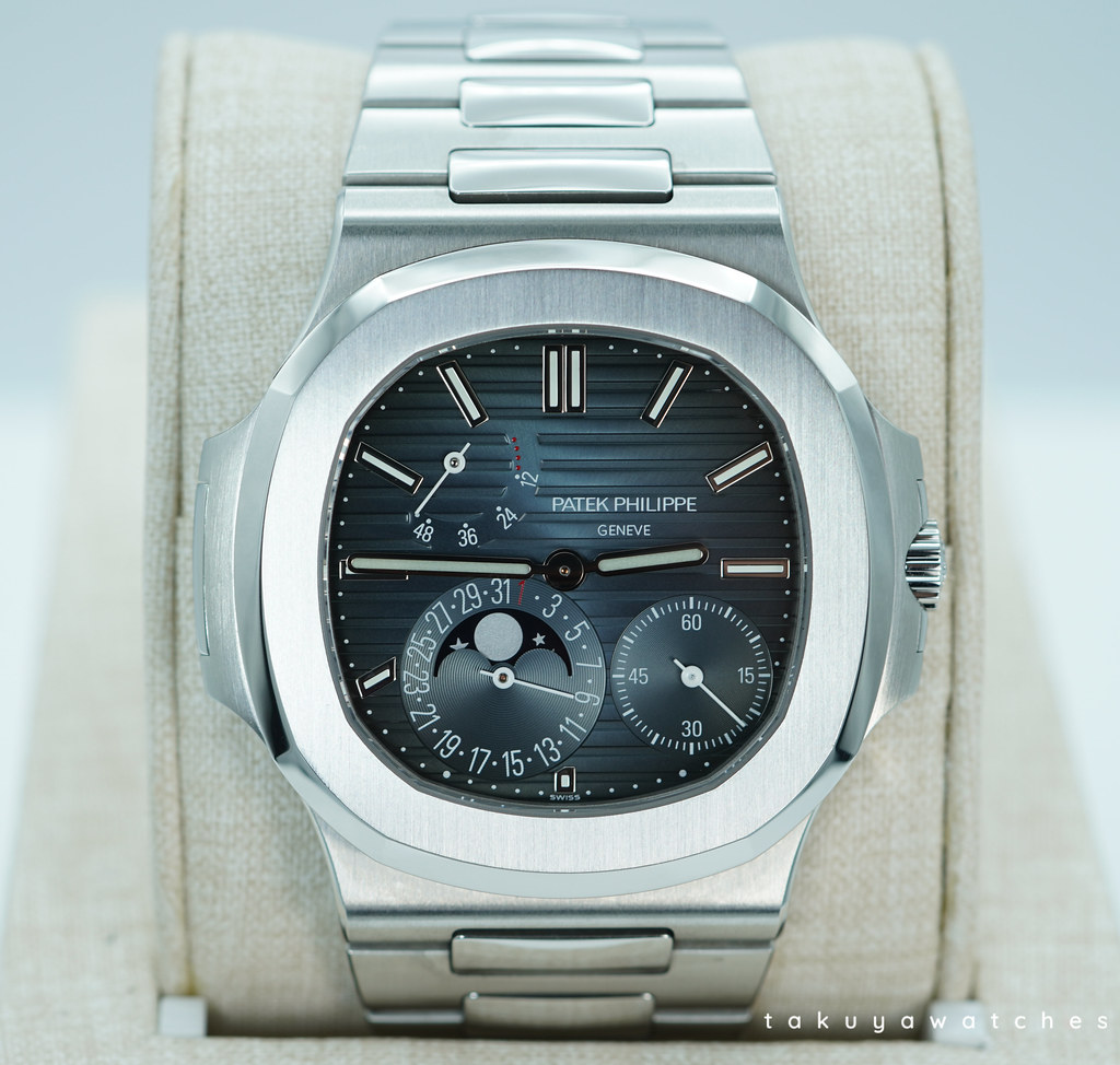 Hi, Selling An Excellent, Unpolished Condition & Very Beautiful Discontinued 2019 40mm Patek Philippe 5712 Nautilus Stainless Steel with Blue Dial, Moonphase, Power Reserve, Subdial Second Functions, & micro rotor movement. It has Old Style Small Patek Logo Clasp. Purchased from Patek Philippe USA Authorized Dealer in 11.2019. Watch Running Perfect with Non Issues. Full Links & Complete Set.