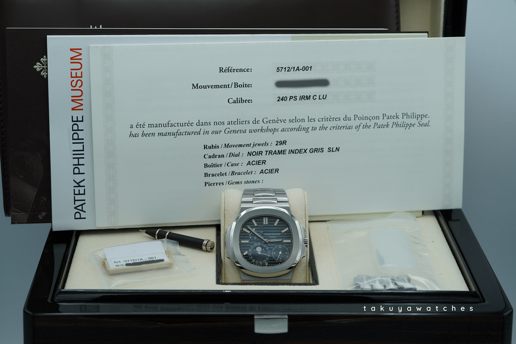 FSOT: Patek PHILIPPE 5712/1A STEEL NAUTILUS BLUE DIAL MOONPHASE 2019 FULL SET