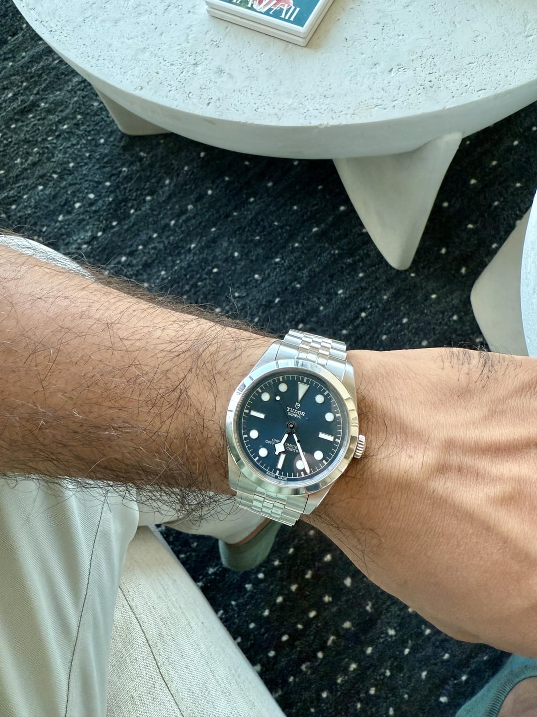 Timestamp: [https://imgur.com/a/mQPX4rG](https://imgur.com/a/mQPX4rG) Up for sale is my June 2024 Tudor Black Bay 36 (Ref. 79640) with the stunning blue dial and OEM 5-link (jubilee-style) bracelet. This is the latest version with the in-house MT4500 Manufacture movement, COSC-certified with a 70-hour power reserve. Condition: Excellent, like-new condition. Worn very sparingly and always with care. The sapphire crystal is flawless. The case and bracelet show minimal to no wear. The watch keeps perfect time and is still under manufacturer's warranty. What’s Included: • Watch on OEM 5-link bracelet with T-fit clasp • All extra bracelet links • Full box set (inner and outer box, sleeve) • All papers, booklet, and warranty card Price: $2,999 (includes insured shipping to CONUS) Payment via Zelle, bank wire, or PayPal. I can also accept crypto from reputable buyers. Ships within 24 hours of cleared payment via FedEx Overnight.
