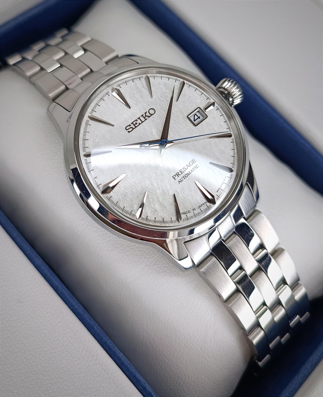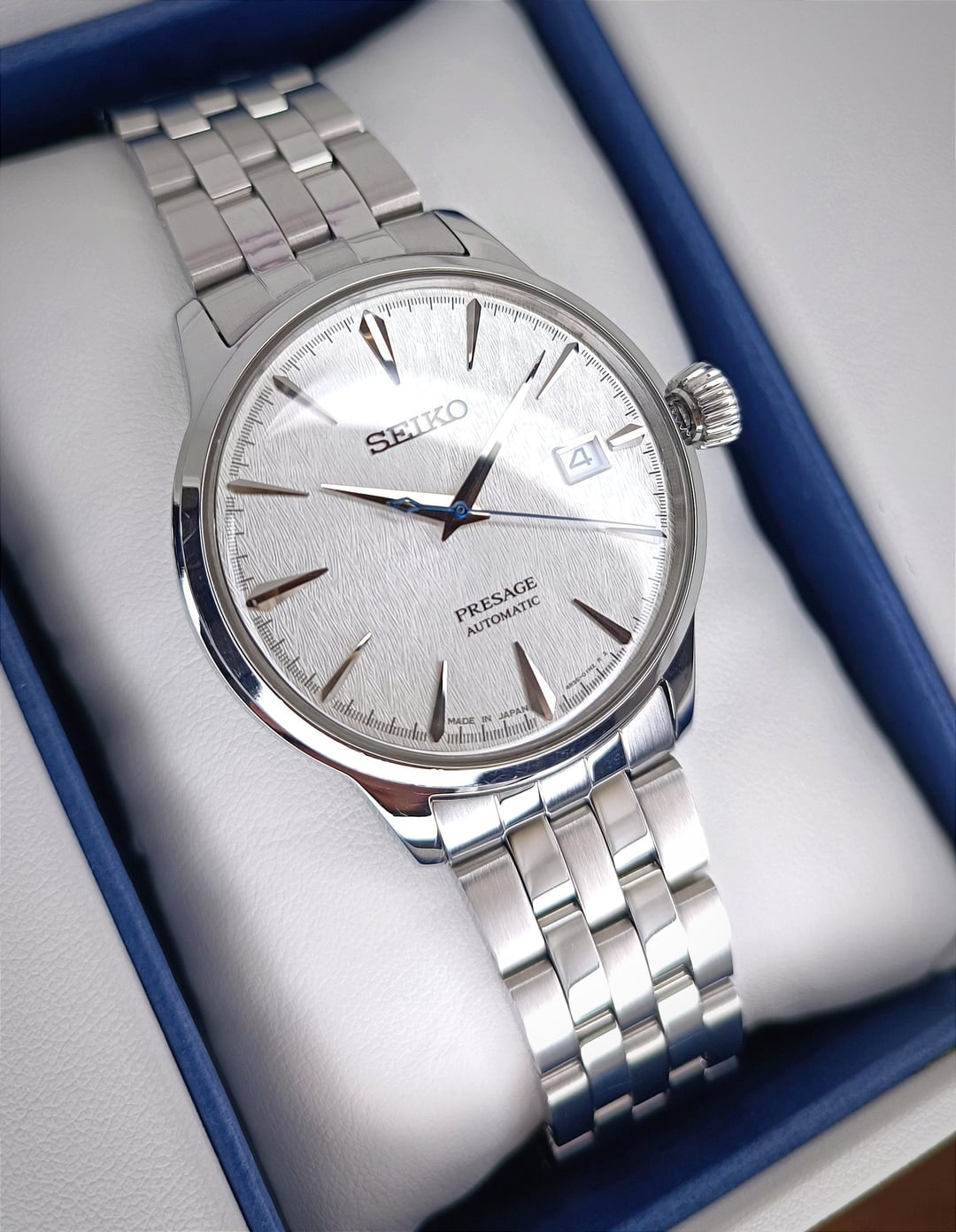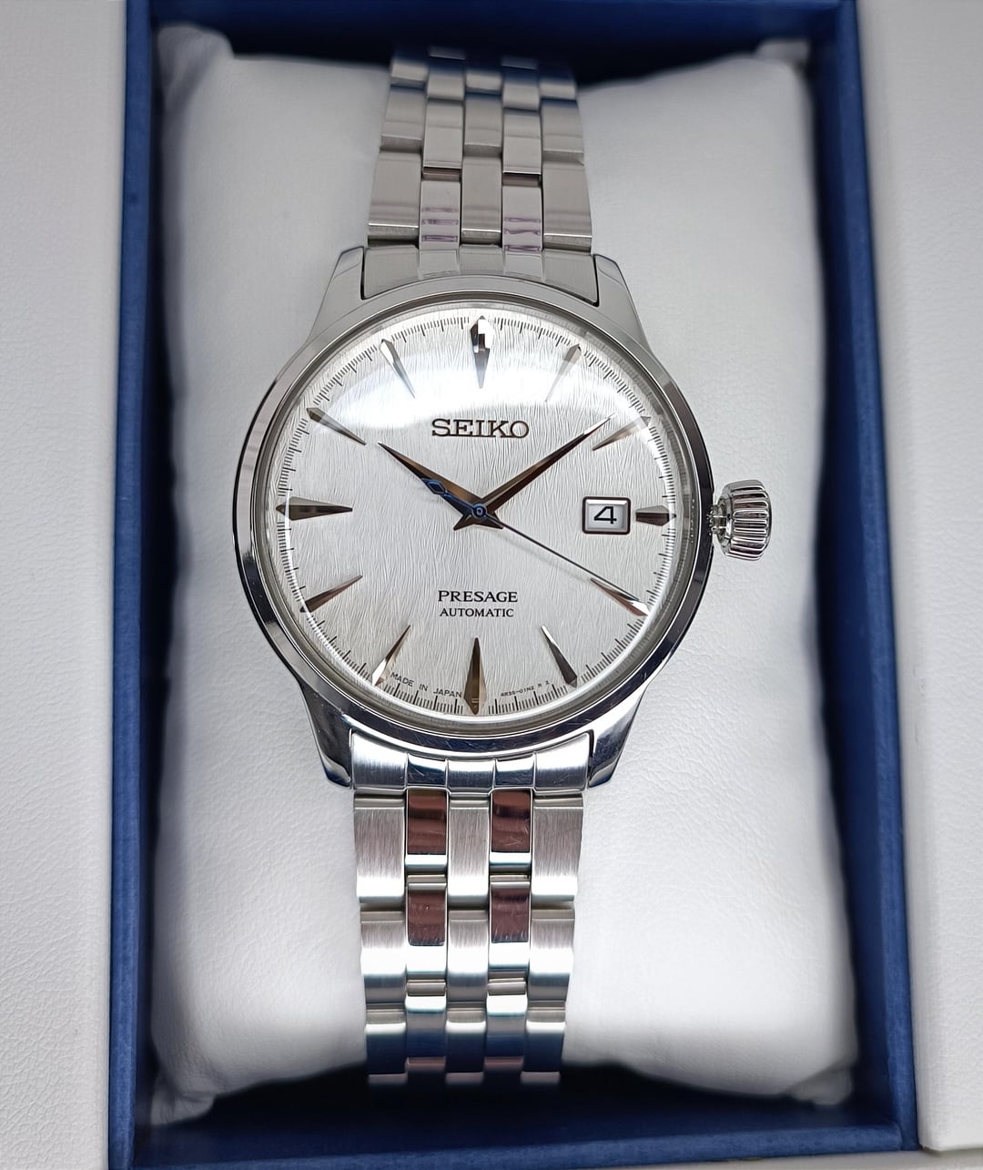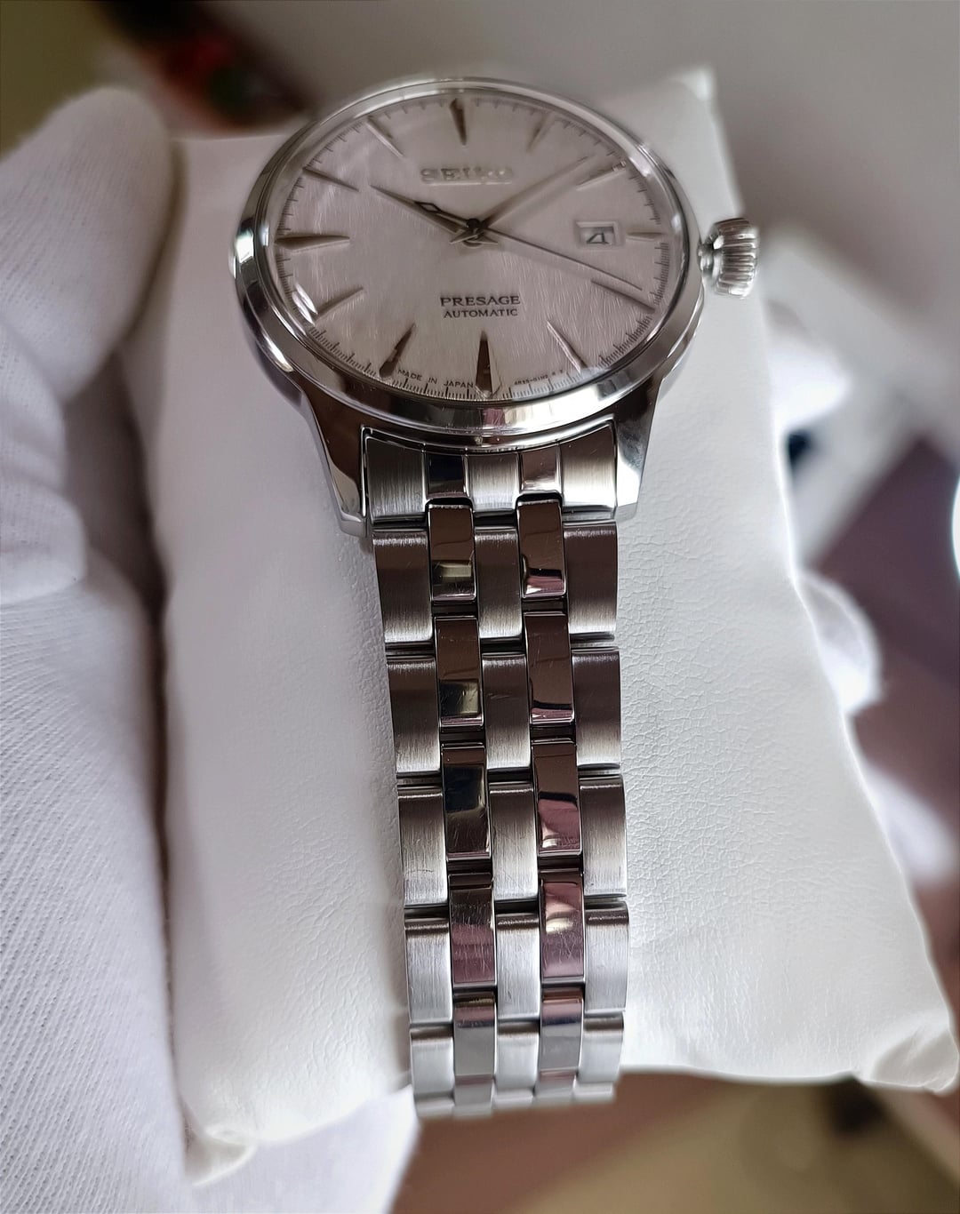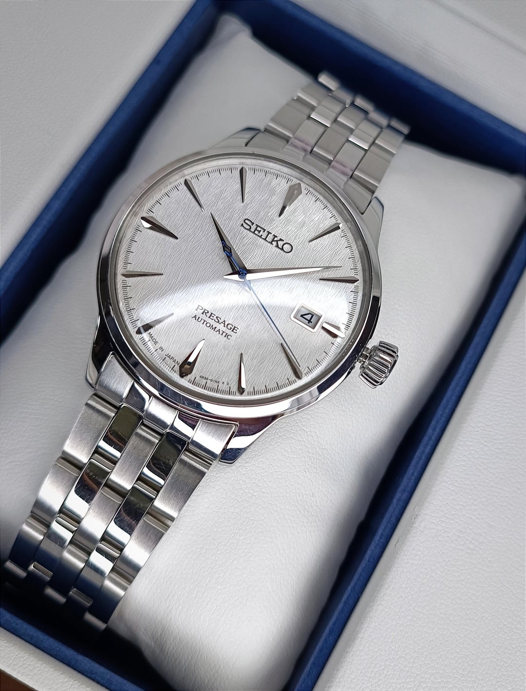 Hello r/watchexchange, I am currently selling the Seiko Cocktail Time Star Bar SARY103 FUYUGESHIKI Limited Edition (JDM) in used condition with a full kit. Condition: This pre-owned item has some scratches on the bracelet and case, but the dial and crystal are in excellent condition. The watch is functioning normally – it comes with the full set: box, papers, and extra bracelet links. Case size: 40mm | Lug width: 20mm Movement: Seiko 4R35, 41-hour power reserve, runs smoothly. Dial: Beautiful textured dial inspired by winter in Japan. The indices are well-finished and reflect light beautifully. Crystal: The crystal is in perfect condition. Bracelet: Original stainless steel bracelet, solid with full links (fits up to a 20cm wrist, never resized). Due to the pre-owned condition, there are some small scratches. Included: Full set as shown in the photos: box, papers, tag, watch, and extra links. Images: https://imgur.com/a/7IFClvB Timestamp: https://imgur.com/a/KwIiGoT Pricing, Payment & Shipping: Price: $585 (shipping not included), no trades. Payment: PayPal F&F or G&S (+4.6% fee). Shipping: FedEx Express, worldwide delivery in 2-4 days ($50-$80 depending on location). Thank you!