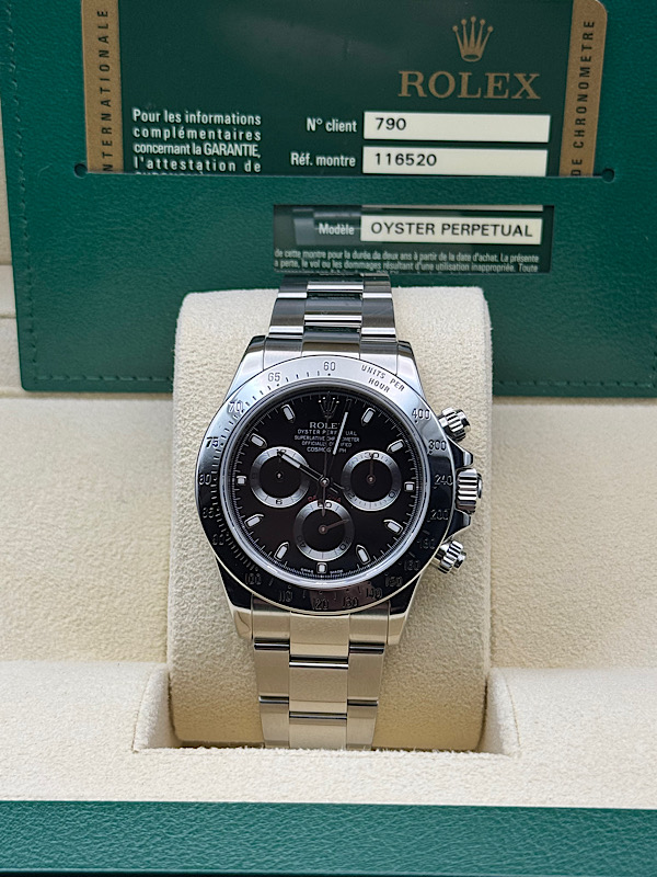 | Rolex Daytona Cosmograph 116520 Oyster Bracelet Black Dial MINT 2025 Serviced wallstreetwatches (655) |