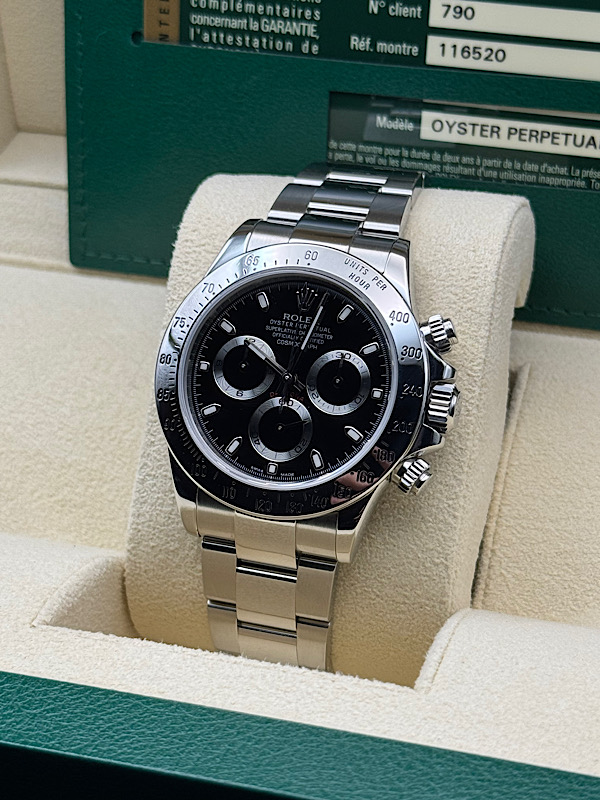 | Rolex Daytona 116520 Cosmograph Steel Oyster & Rubber B Black Dial Watch Papers diamonds-east-international (1345) |