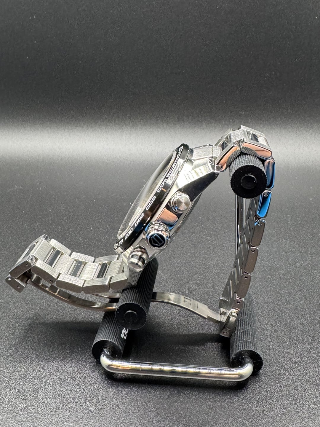 Here is one you do not see often. This Carrera features Tags in-house movement shown in fantastic condition. This watch comes as a full kit box papers links and in excellent condition. Happy to answer questions or so FaceTime video if requested.