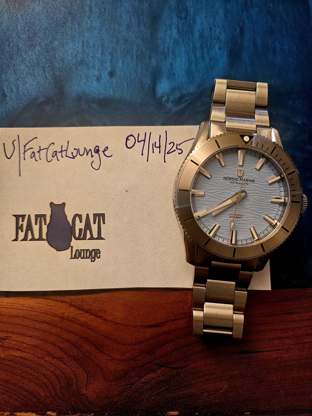 For sale: Nordic Marine Instruments Ostersoen Himmelbla Watch condition: Pre-owned. Watch is in mint condition. Dimensions: - 40mm case width - 11.9mm case thickness - 48mm case length / lug-to-lug - 20mm lug width tapers to 16mm at clasp - Bracelet fits up to 8.5-inch wrists Includes: Box, papers, full links, watch roll. Price: $450 Payment: PayPal F&F, Venmo, Zelle, and PayPal G&S (add 3%) accepted. Shipping: Free USPS shipping within CONUS. Location: Fernandina Beach, Florida Trades: No trades at this time.