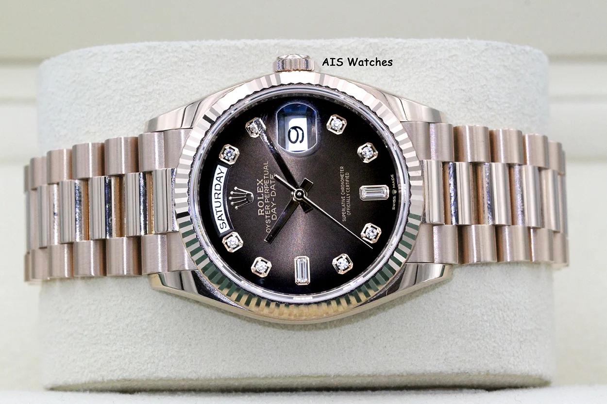 Vor 8 Monate | Rolex 128235 DayDate 36MM DD36 EverRose Gold Brown Ombré-Diamond Dial B&P | $39.975 | |