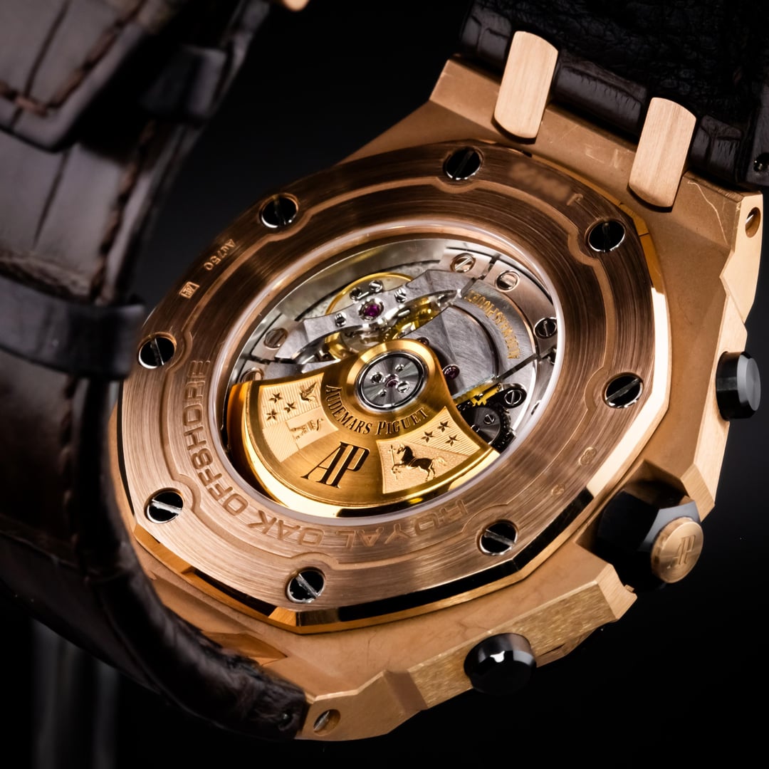 | Audemars Piguet Royal Oak Chronograph 41mm, Black Dial - 18kt Rose Gold 26320OR motionintime_ny (2198) |