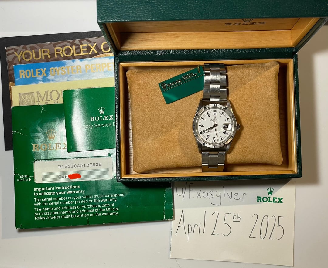 Vor 7 Monate | [WTS] Reduced price! Rolex Roman Print Date 15210 Engine Turned Bezel, Full Kit | $3.850 |