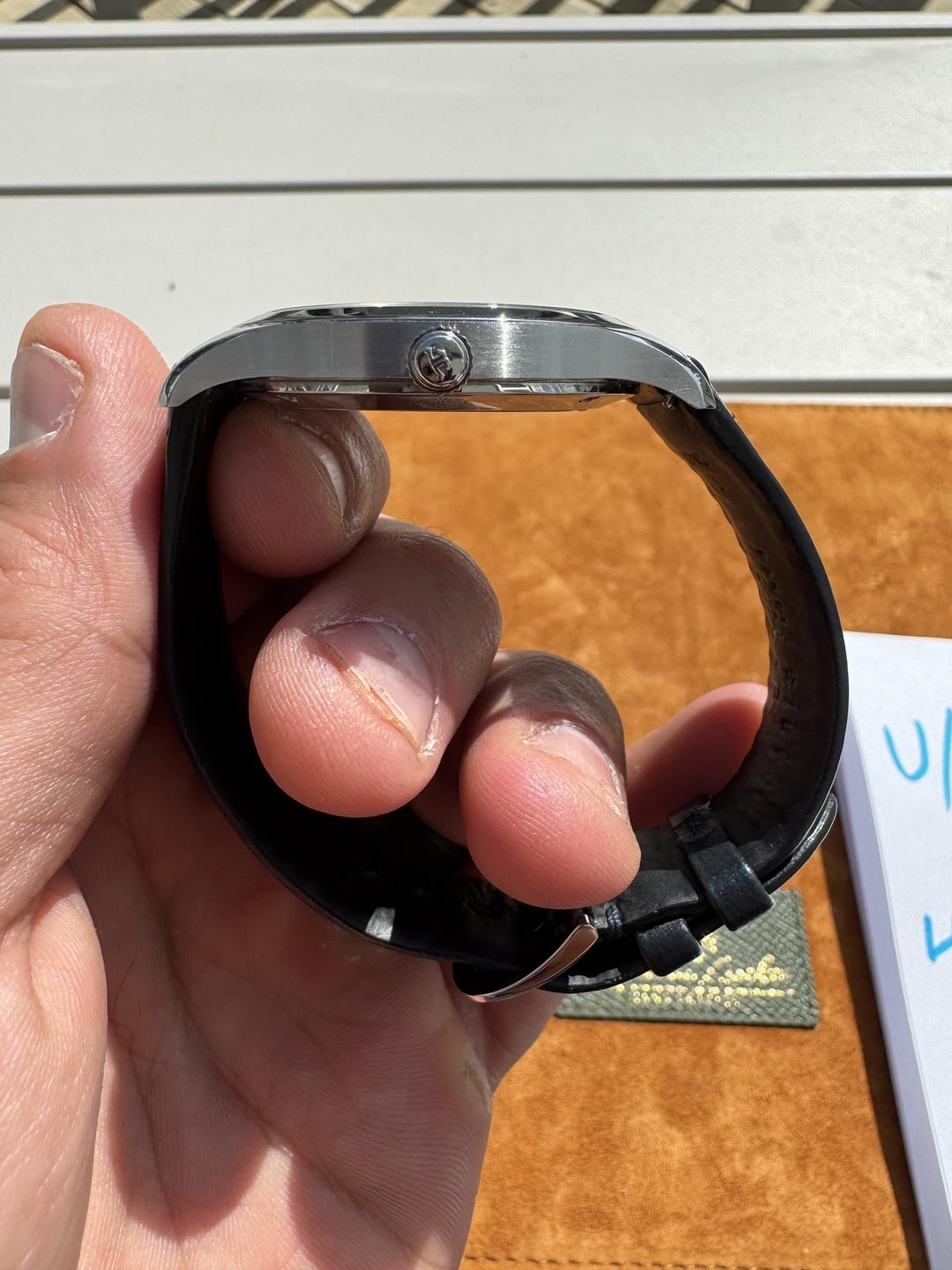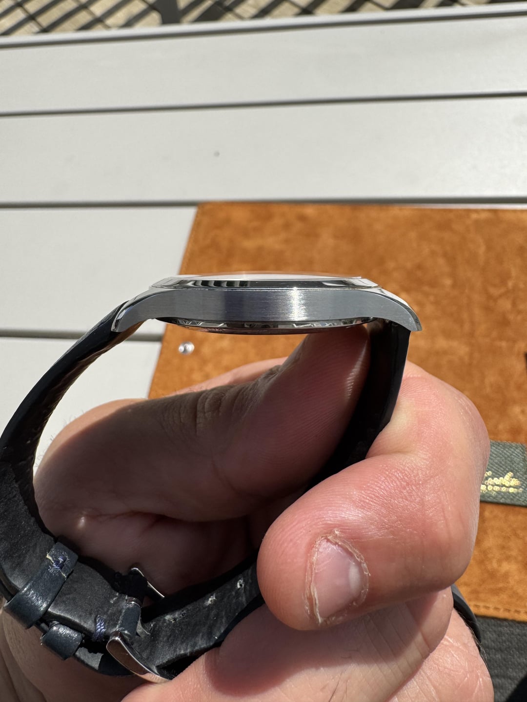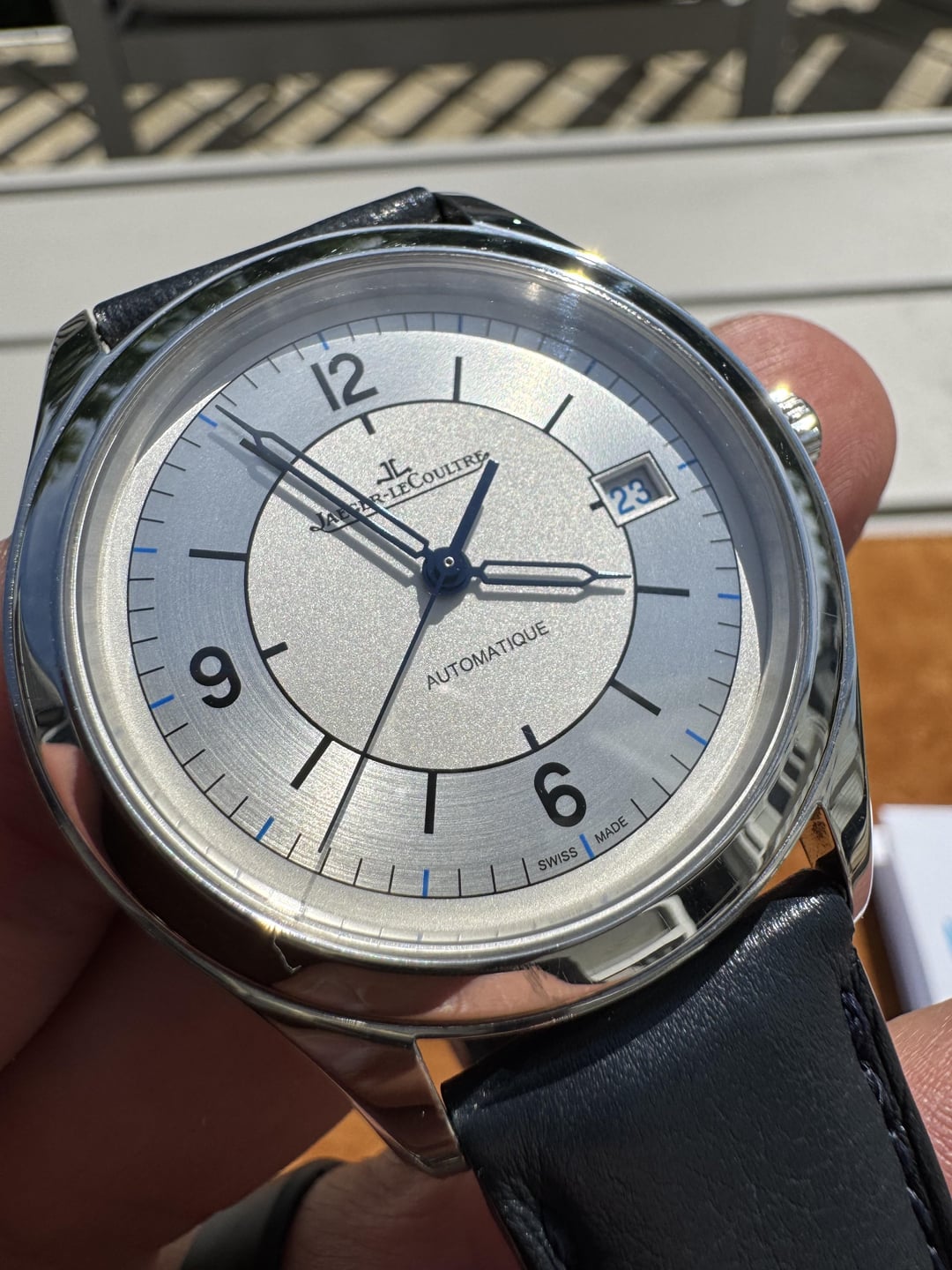 Watch friends! Today we have the gorgeous limited run Q1548530 Master Control Date offered for sale. At a supremely wearable 39mm x 8.5mm with 20mm lugs, this piece is as versatile as they come. Class it up on the included blue or a black strap, or dress it down with a rougher leather or nato-style. With JLC under the hood, this is some of the best bang-for-buck out there from one of the big houses. The watch is running well and is a simple stunner in the sun with its multi-textured dial and blued syringe handset. REDUCED to $4750 + shipping and ready to find a new home!