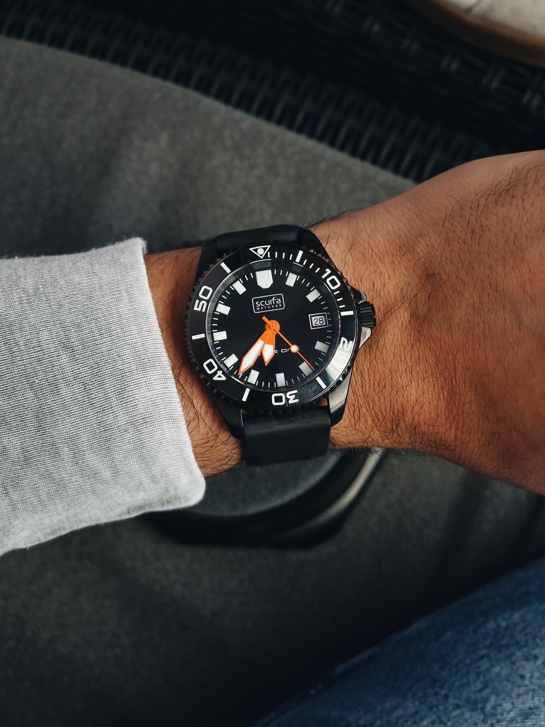 Scurfa Watches are specifically designed to meet the requirements of divers looking for a watch that won't let them down. The piece you see here is the Diver One D1-500, made to celebrate the company’s 10th anniversary. The watch features a black PVD 40mm case with a black sunburst dial, orange hands with blue Super Luminova BGW9, a domed sapphire crystal, and a ceramic bezel. It has a water resistance of up to 500 meters and a helium escape valve. Inside is the Ronda caliber 7155M, a gold-plated 5 jewel Swiss Made quartz movement with longer battery life and an EOL indicator. In my opinion, these are amazing specs for such a cheap watch that’s built to last. **Condition:** Barely used. No major scratches or scuffs. Please see the pictures for a better description. **Case Size:** 40 x 47.7mm 316L stainless steel case with a thickness of 14.4mm and a lug width of 20mm. **Movement:** Ronda 7155M, Swiss Made quartz, 5 jewels. **What’s Included:** Box and papers. **Price:** Asking $400. Please add $20 for worldwide shipping. Payment methods include Wise, ACH transfer, Revolut, Bitcoin (On-Chain or Lightning), or PayPal G&S for buyers with solid references. Add +6% for currency conversion fees on the latter. I’m located in Portugal, but worldwide shipping isn’t an issue. Established seller with over 220 transactions – buy with confidence! Make sure to follow me on Instagram (@daily.worn) to check out the newest additions. [Pictures](https://imgur.com/a/Sisf6Tx) [Timestamp](https://imgur.com/a/u7DcK5c)