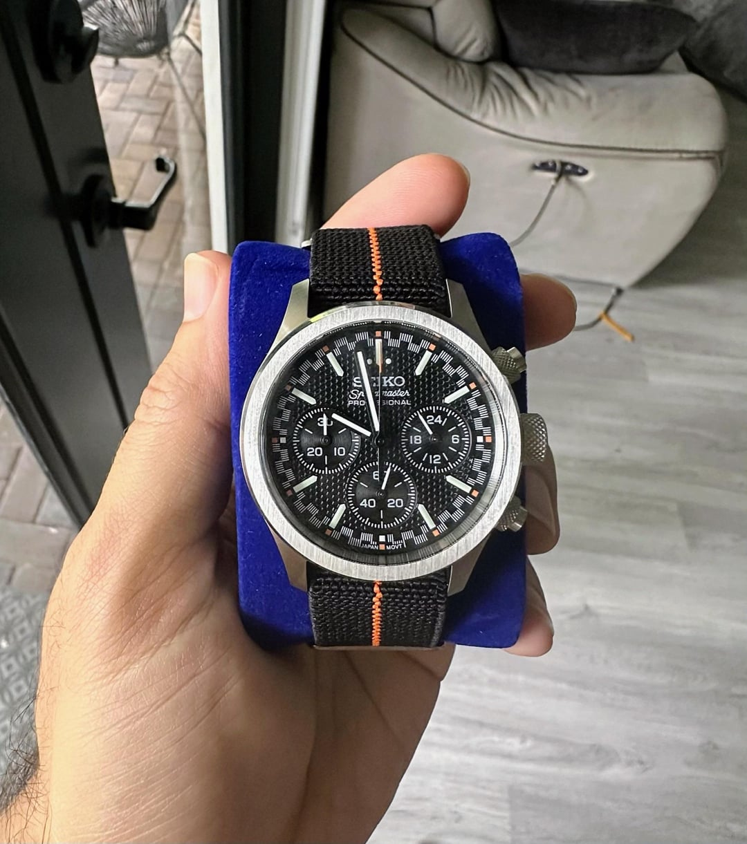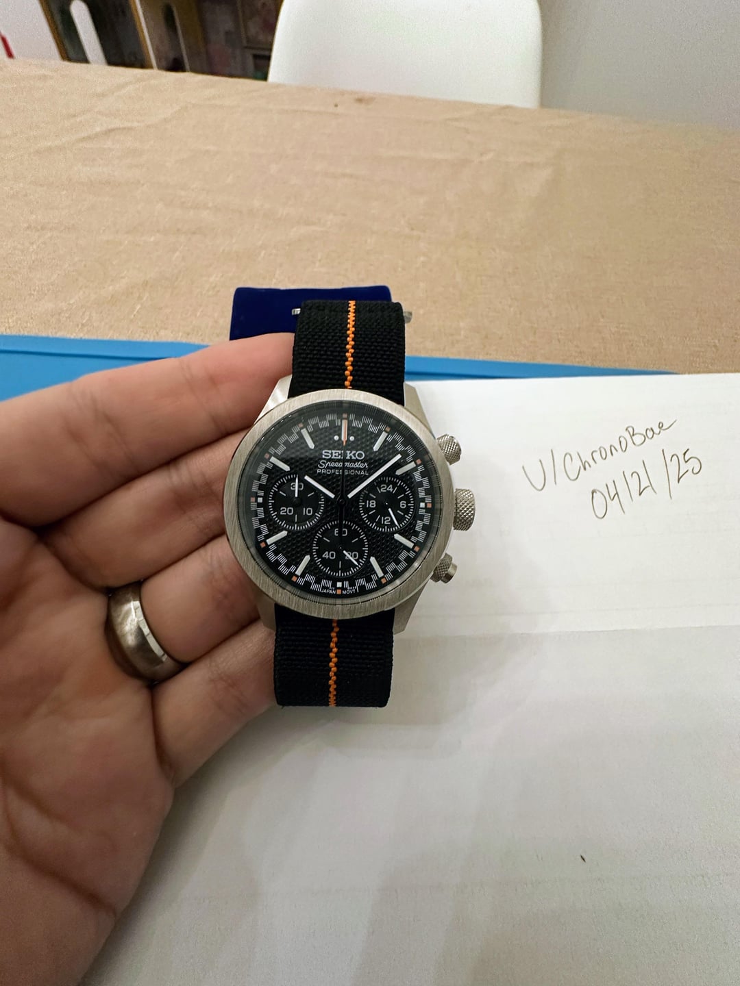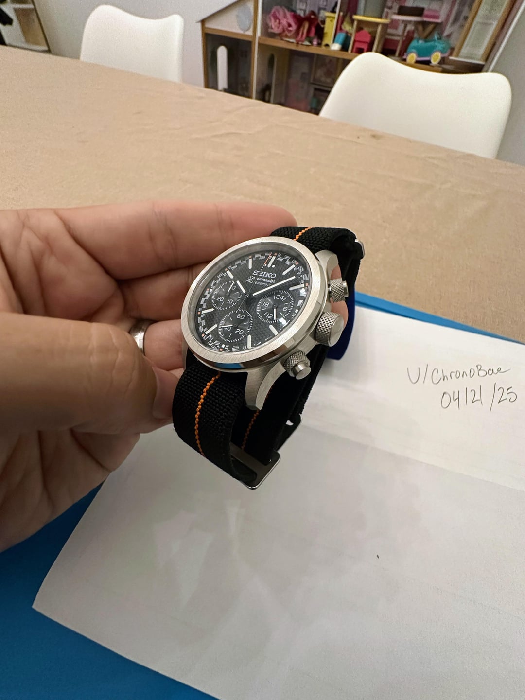 Hey WatchEx. I’m looking to sell my custom-built chronograph watch. It is in brand new condition and worn once. All functions operate properly. It has a brand new Seiko VK63 Mecaquartz movement with a new battery. Some more information: Case size: 39mm Lug to Lug: 46.2mm Lug width: 20mm Thickness: 12mm with sapphire glass Strap: Parachute Looking for $190 for the watch. PayPal, Zelle, or Venmo