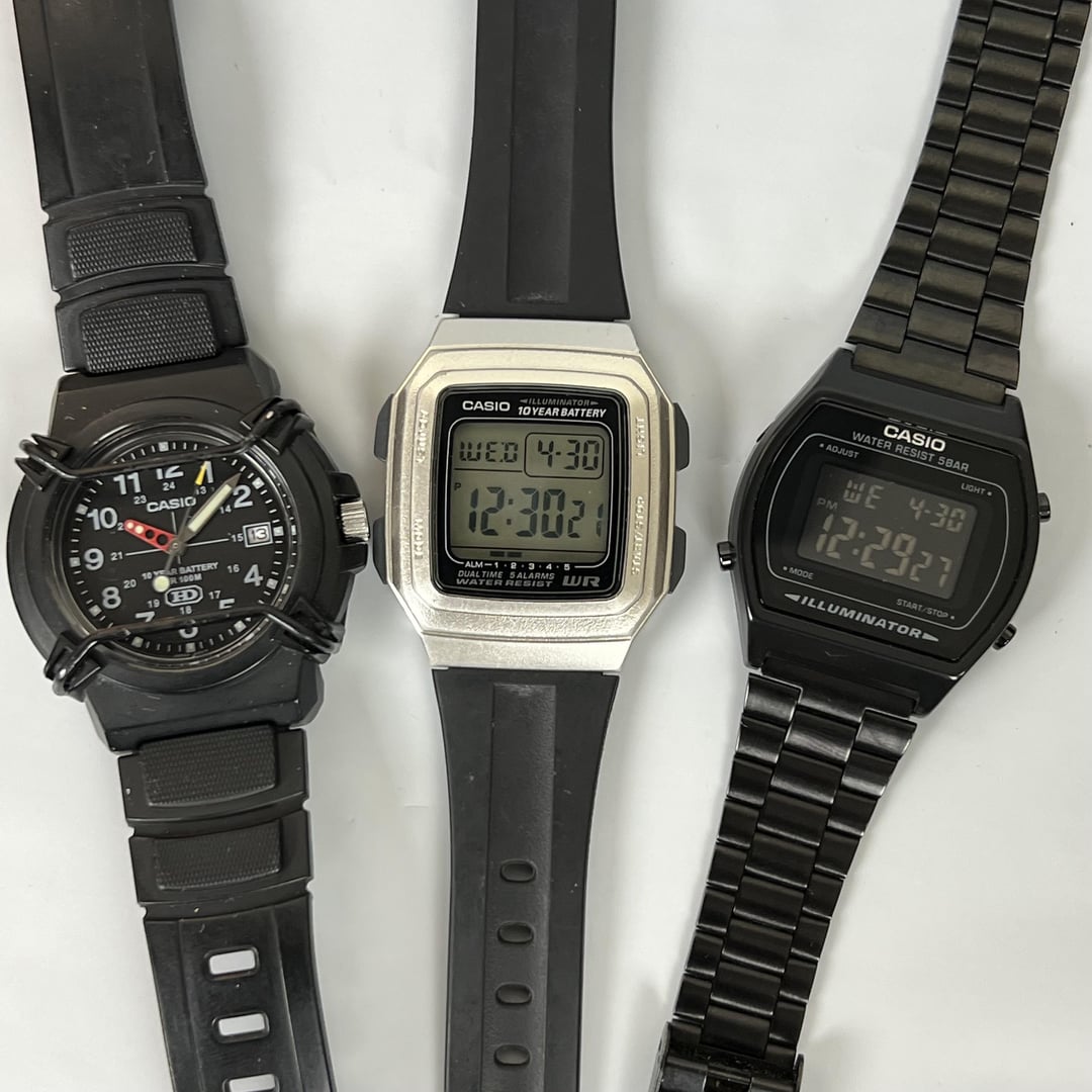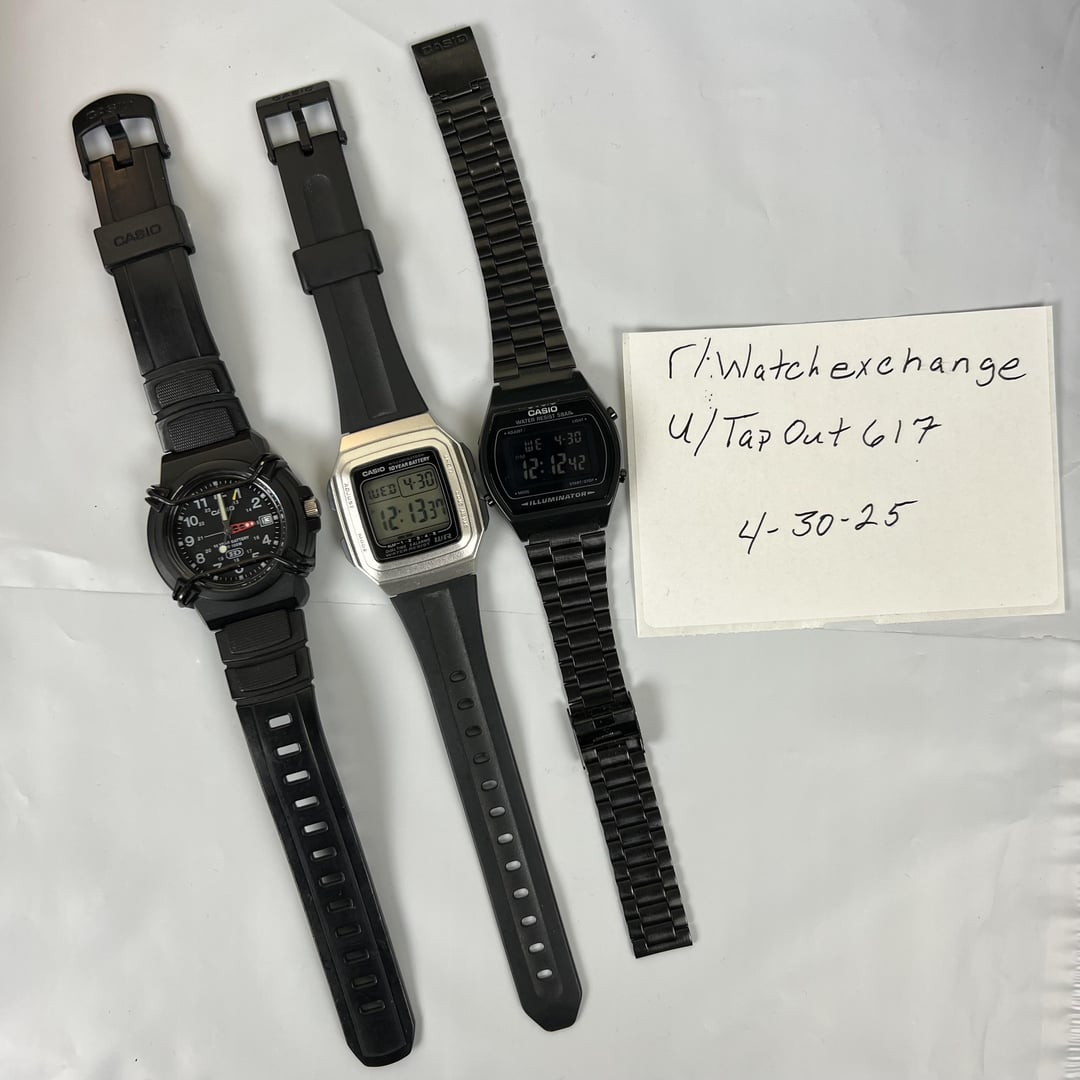 [Proof/Timestamp](https://imgur.com/a/9BeNGk3) **BRAND** : *Casio* **MODELS** : *HDA600B-1BV* *F-201WA* *8B640W* **MOVEMENT** : (Quartz) Contents: **These come naked WATCHES ONLY!** **Condition** : Overall condition is pretty normal on all 3 watches. These are great budget watches that I just don’t use anymore. There are some light signs of wear and a few barely noticeable surface scratches. There has been fresh batteries installed. Both are good to go. I do guarantee the HDA600, once a new battery (2012) is installed is good to go as well. 100% fully functional without any issues! Feel free to reach out to me with any questions or concerns of interest. **Asking a reasonable $35** via **Paypal G&S or Venmo (Both are business accounts so transactions are secured)** *KEEP IN MIND THAT ANY SHIPPING/FEES ARE COVERED ON MY END. Shipped CONUS only (international shipping will cost $10 extra) via PayPal G&S/Invoice. I can also do local meetup if you are in the Boston,MA area.*