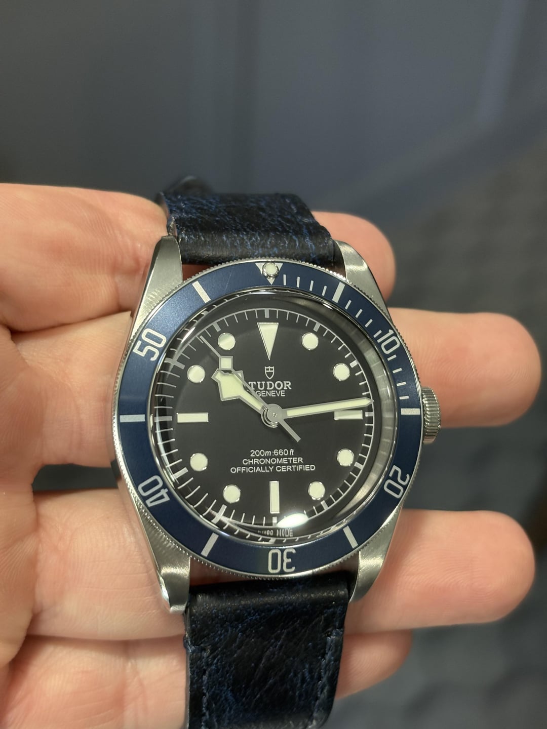 Looking to sell this Tudor BB 41 in blue. Comes in an extremely comfortable Tudor genuine leather band and also includes an extra nato, strap, and bracelet that fits 6.75” wrist. Watch comes with display box and jeweler card only. Overall good condition aside from few signs of wear on case side (pictured). Keeping great time! Asking $1900 shipped conus payment via PayPal or Zelle.